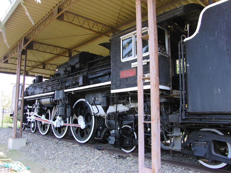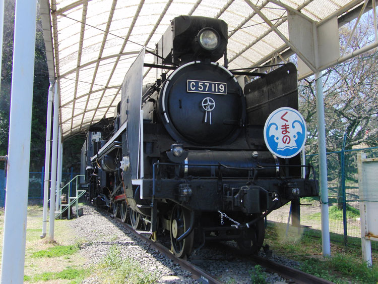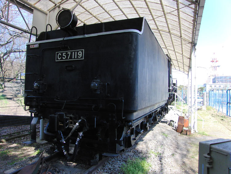 くろしお9号で紀伊田辺に到着。会津児童公園に保存されているC57 7号機を訪問。 ・車歴 製造年月日 1937年7月8日 製造所 川崎車輛 1937年7月8日 小郡機関区 1939年8月31日 広島機関区 1941年10月 岡山機関区 1945年4月1日 門司港機関区 1956年11月 尾久機関区 1957年9月 山田→(改称)伊勢機関区 1964年4月1日 亀山機関区 1970年3月31日 紀伊田辺機関区 1972年10月14・15日 鉄道開業100周年記念列車 汐留〜東横浜間牽引 1973年9月9日 さよならSL南紀号 和歌山〜紀伊田辺間牽引 1973年11月8日 紀伊田辺機関区にて廃車 わたしは昭和12年7月8日に川崎車輛株式会社でうまれました。その年に広島鉄道管理局の小郡機関区に配属されたのをふりだしに14年広島機関区、16年岡山機関区、19年門司機関区、31年東京の尾久機関区、32年天王寺鉄道管理局の山田機関区、38年亀山機関区、そして昭和45年田辺機関区にきました。それから紀勢本線沿線の皆様にかわいがられて走り続けてきましたが、昭和47年3月わたしの役目はおわりました。 生まれてからわたしは2695259km走りましたがこれは地球の赤道上を約68周したことになります。この間わたしの最大の思い出は、日本の鉄道発生の地、新橋−横浜間を鉄道100年記念祭の昭和47年10月14日特別列車を引いて走行したことです。 このたび国鉄と田辺市のはからいで田辺機関区からトレーラーに乗せられてこの会津児童公園に定住の地をいただきました、みなさんどうかいつまでもわたしをかわいがってください。(案内板より) レプリカであるようですが、「さよならSL南紀号」のHMを掲出して保存されています。 C57にしてはすっきりとしないスタイル、現役時代に集煙装置が取り付けられていたため短い煙突になっているんですね。集煙装置は鉄道100周年記念列車の時点ですでに取り外されていたようですが。 近年整備されたのか、状態は良好です。動輪は塗装されており刻印は確認できませんでした。 非公式側のプレート周り、検査表記も一応?残っています。 こちらは公式側、海側となるので少し表面が荒れています。 後ろから。 訪問時は3月末でしたが、日中はすっかりポカポカ陽気。公園で機関車を見ながらゆっくり過ごしてしまいました。 紀伊田辺からはポタリングで白浜へ。続きます。