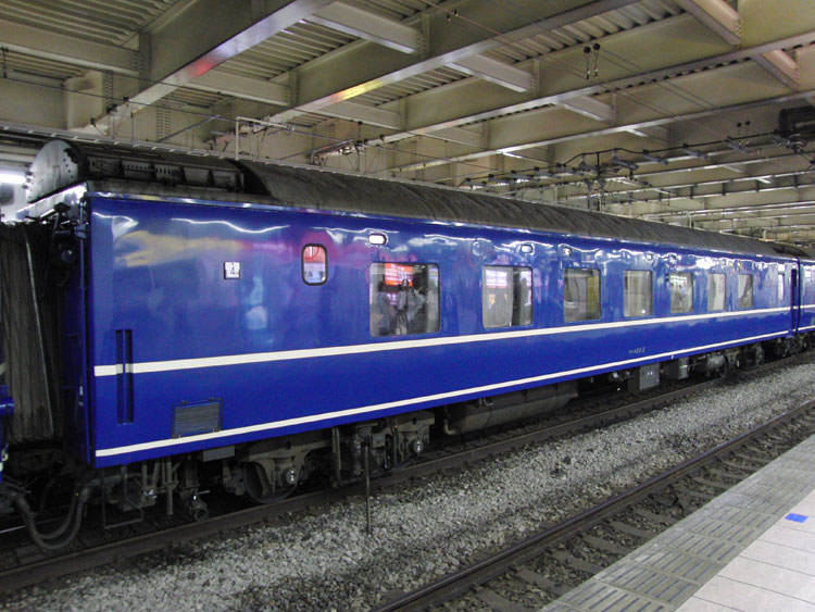 この日は、小淵沢〜盛岡間で24系客車を使用した団体臨時列車「いわて・平泉号」が運転され、中央線をブルートレインが走行するということで、撮影してきました。 最初は八王子で撮るつもりでしたが、3番線に貨物が停車中ということで立川に移動。それなりにパニっていましたがなんとか場所を確保して、入線。手前にE233系の普通列車が停車中だったので、まずは顔だけ。特製HMを掲出、なんだか「平泉・いわて物語号」と似ていて紛らわしい・・・。 9528レ EF64-1052[長岡]+24系6B 団体臨時列車"いわて・平泉号"@立川 そうこうしていると手前のE233系が発車、編成を撮影。 ↑同上 わずかな停車時間を利用して編成も見てみました。「日本海」臨時化後、初の運用となったオロネ24−2。 ↑同上 後ろはカニ。幕は入っておらず、蛍光灯丸出し。 ↑同上 この後大宮からは急行「平泉・いわて物語号」のスジで盛岡まで行ったようです。 この日はこれにて帰宅。 −おまけ− 八王子にて、115系M11編成+M**編成が停車中でした。 ↑回***M 115系M11編成+M**編成6B回送@八王子