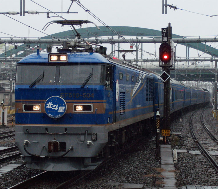 遅れて運転された東北・北海道方面の夜行列車を撮影する
