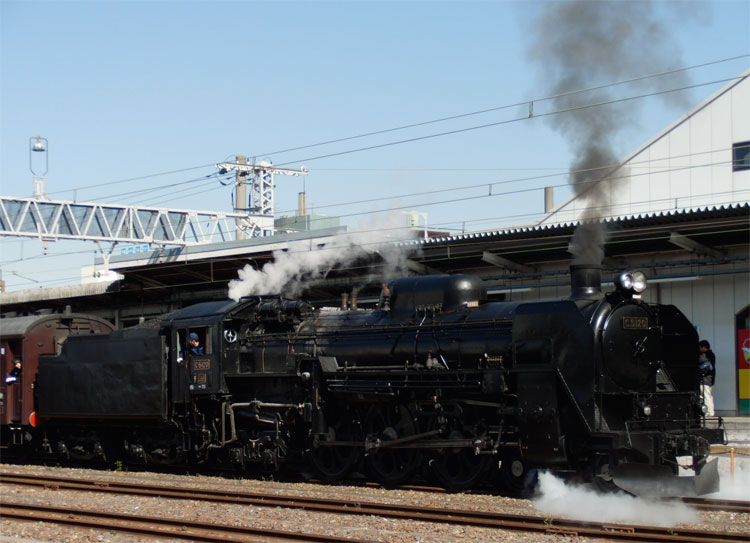 保存車両めぐりを一時中断して、大井川鐵道のSL重連運転に向かいました。 「SLフェスタ2011」に合わせて、数年ぶりの重連運転が10月8日・9日に行われました。9日の組み合わせは、C10 8+C11 190。新金谷手前の踏切にて。 新金谷の先の跨線橋に着いたら、C1が7両の客車を頑張って入れ換え中でした。単機でも一応7両牽けるんですねぇ。 新金谷に新しく設置された転車台に、C11が乗りました。 回転中はほとんど背中です。 回転終了。 庫に戻っていきました。 続いて、逆向きのC10がやってきました。 留置線には、客レに使用されたE102と旧客。 機関庫裏にはC56 44、夕日でギラリと輝いていました。 この後は、大代川側線の2機のSLを見にいきました。続きます。 | カレンダー