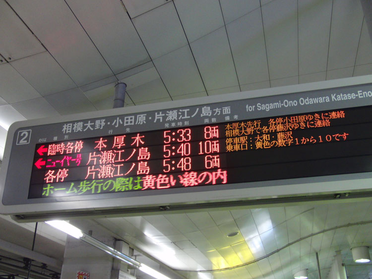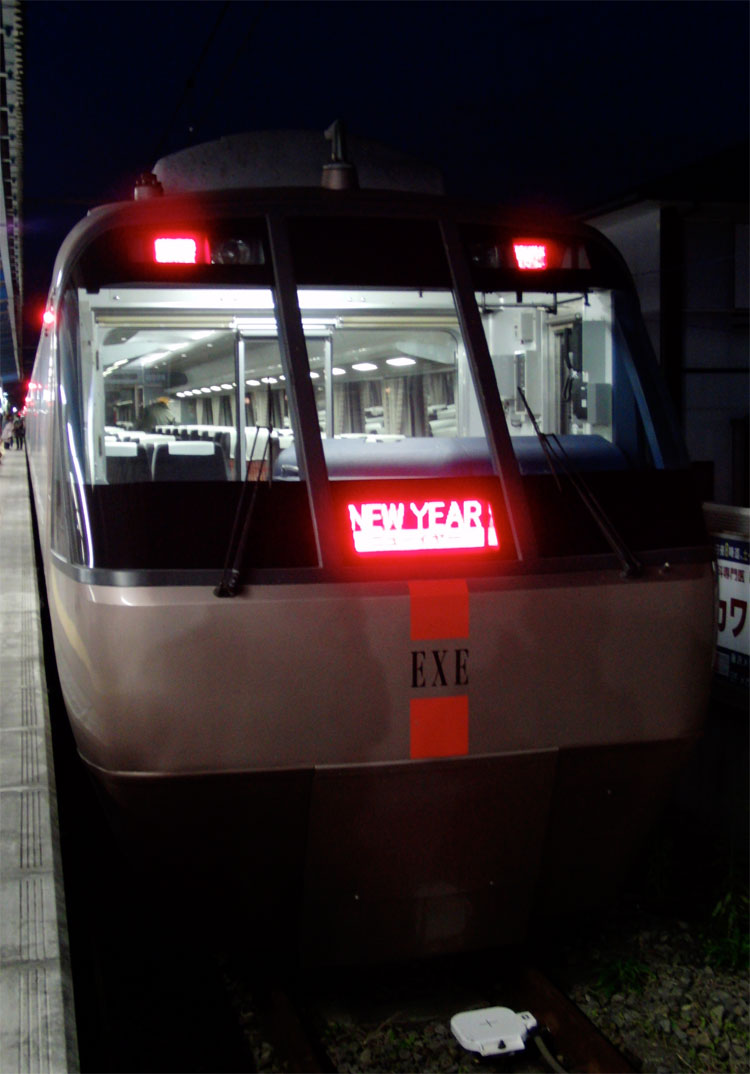 元日。この日は、早朝から活動開始。町田に行って「ニューイヤーエクスプレス」を狙います。 4:30発ニューイヤーエクスプレス13号片瀬江ノ島行き、VSE50002F。今年もヘッドマークが付きました。 側面LEDには「ニューイヤー」。 新宿から直通の各停伊勢原行き。2057F。 4:43発ニューイヤーエクスプレス15号小田原行き。10001F。新年号に入るのも今年が最後ですね。 先頭車には「初詣号」表示。 NYE17号は町田通過なのでスルーしましたが、旧塗装の7004Fだったようです。来年に持ち越し。 5:18発メトロニューイヤー19号、MSE60252F。昨年までは特別表示だったようなのですが、今年は臨時・・・。 5:40発ニューイヤーエクスプレス21号に乗車。 EXEには特別表示も入っています。 満席にはならずに、町田を発車。乗り心地が良く快適な旅でした。片瀬江ノ島に到着。 4番線には、先に片瀬江ノ島に到着した7004Fが停車中。 肝心の初日の出は、ちょっと残念。 この後は、江ノ電沿線をポタリング。まずは、江ノ電もなかの651号車前頭部を訪問。続きます。