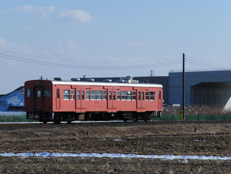 この日は、久々に所用で茨城県に行ったので、合わせて首都圏色のキハ101を撮影してきました。 所用が終わって駅に戻ると、新塗装化されたキハ2001の上り列車が到着。取手行きもついに単行になってしまって寂しい限りですねぇ・・・。 ↑(省略) こちらを見送って、下館行きに乗車、下車したのは三妻駅。屋根無しのだだっ広い島式ホームがなかなかいい感じ。 こういった小規模な駅は駅舎がプレハブ小屋だったりしますが、こちらの駅舎は立派なものでした。 右側に筑波山を望みつつ、下館方に10分ほど歩いて撮影地に到着。快晴の青空と雲もなく綺麗に見える筑波山、素晴らしい条件が揃ったなか、1両の国鉄型気動車がトコトコ通過。 ↑3086D 関東鉄道キハ101号車1B 水海道乗り換え取手行@南石下〜三妻 過ぎ去った気動車の先には建設中の圏央道。ただでさえTX開業後は客足が落ち込んでいるのに、これが完成すると、関鉄の利用客はさらに減ってしまうんだろうなぁ。 ↑同上(後追い) この後は、取手から常磐線に乗っていろいろと時間を潰しつつ、常磐線特急を撮りに馬橋へ。続きます。