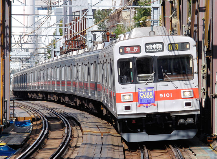 さよならHMを掲出した東急9000系を撮影する