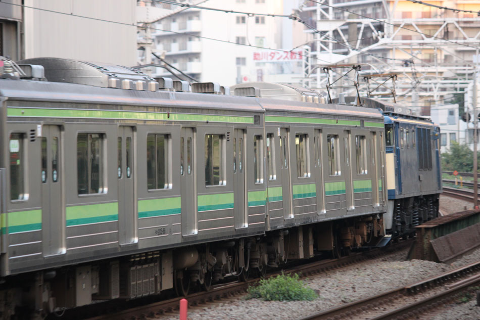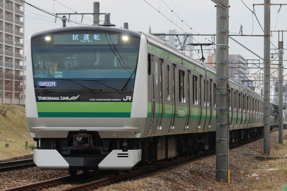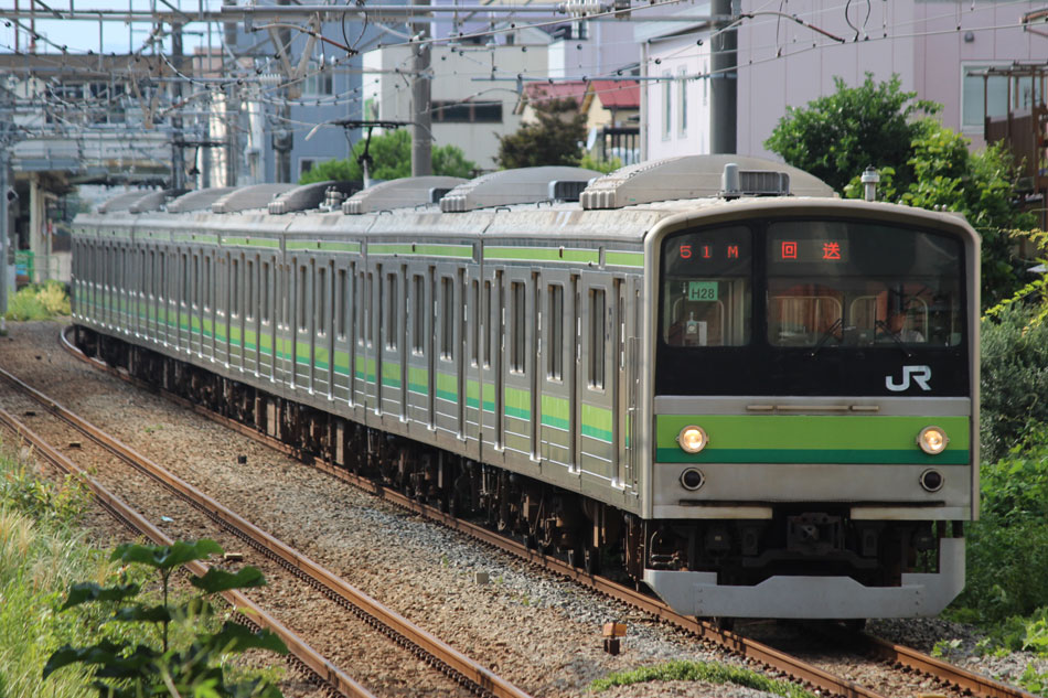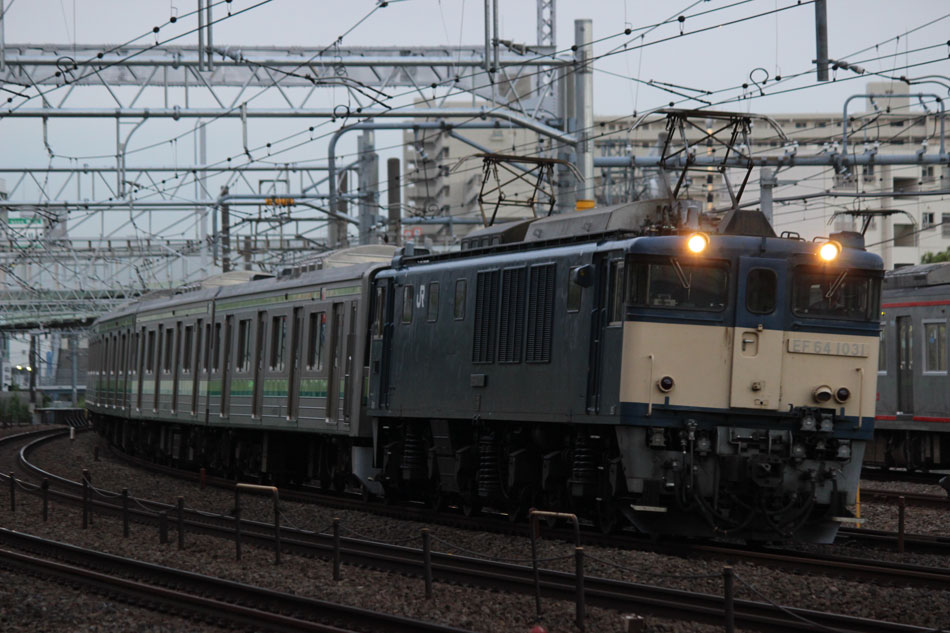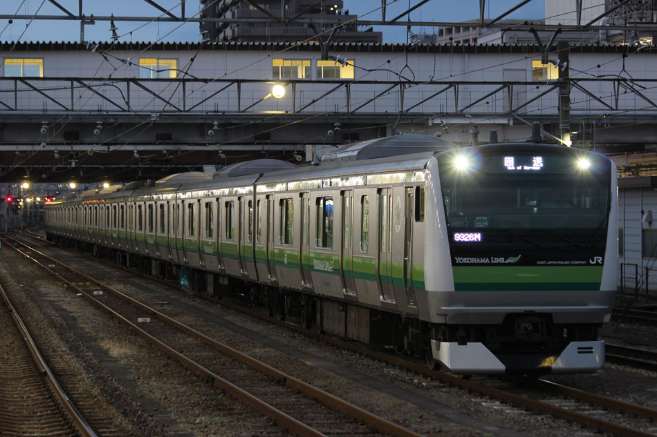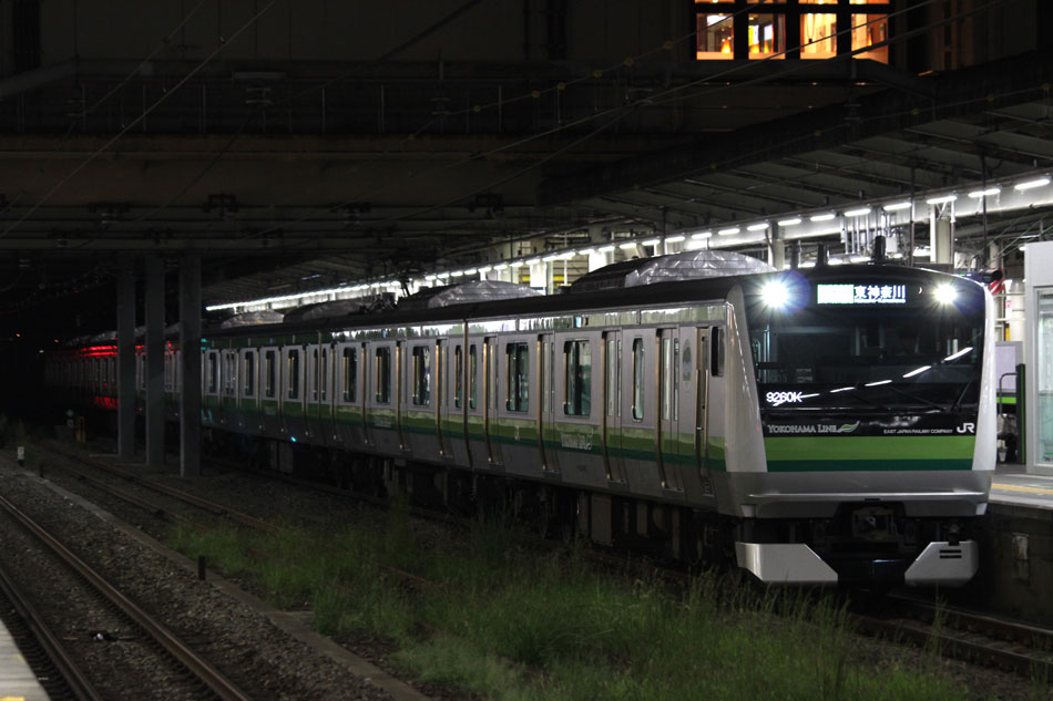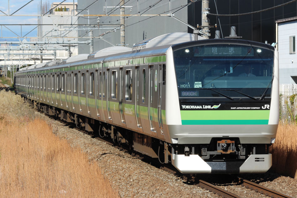・6日 台風接近に伴い、終日古淵〜東神奈川間で徐行運転が行われ、大幅に本数減&遅れが発生しました。朝から根岸線直通列車は東神奈川止まりになりましたが、入庫の関係で大船行きのみ運転されました。810Kは大幅に遅れたため小机止まりとなり、しばらく小机で留置された後、回送になったようです。 ↑846K E233系H006編成8B 各停"大船行" ・10日 4日に疎開先の小山から返却されていたH8編成が、海外譲渡のためEF64 1031牽引で新津へ配給されました。 ↑配9766レ EF64 1031[長岡]+205系H8編成8B 譲渡配給@原宿 ・12日 尾久に疎開中のH27編成を撮影。 北斗星の入区の時間に合わせて行ったので並びも。 17日のH1編成の配給は沖縄にいたので撮影無し。 ・21日 集約臨が運転されました。 ↑9382M 185系B2編成8B 集約臨@片倉 ・24日 21日に疎開先の尾久車両センターから返却されていたH27編成が、海外譲渡のためEF64 1031牽引で新津へ配給されました。 ↑配9766レ EF64 1031[長岡]+205系H27編成8B 譲渡配給@五反田 かつて毎日のように走っていた山手線の線路を横目に、機関車に牽かれて帰らぬ旅へ。 ↑同上(後追い) 新宿停で追い抜いて新大久保へ。こちらは後追いメインで。 ↑同上@新大久保 H27編成を以て、約半年間続いて横浜線205系のインドネシア譲渡は完了となりました。譲渡配給コンプとは行きませんでしたが、配給のスジが早朝だったおかげでここまで追いかけることが出来ました。今では、毎週始発電車に乗って出かけていたことが遠い昔のように感じられます。いつか、インドネシアでの元気な姿を見に行きたいものです。 さて、205系はいなくなりましたが、引き続き横浜線の記録は続けております。 ・26日 立川〜八王子〜中山間で、H017編成を使用した団体臨時列車"立川ひまわり号"が走行しました。復路までの時間、H017編成は橋本中線で留置され、新時代を象徴するような4並びが実現。 ヘッドマークの掲出はありませんでしたが、側面窓にはヘッドマークの絵柄が描かれた張り紙が貼られていました。 回送で中山へ。 ↑回9324M E233系H017編成8B 臨時回送 中山から乗客を乗せて立川へ。横浜線E233系、疎開で新宿〜武蔵小金井間は走行歴がありますが、八王子〜立川間は初走行でした。 ↑9526M E233系H017編成8B 団体臨時列車"立川ひまわり号"@八王子〜豊田間 ↑同上@豊田〜日野間 運転後には、立川〜八王子〜橋本間で返却回送されています。 ↑回9326M@八王子 10月の撮影分は以上になります。撮影できなかった動きは以下のとおりです。置き換えが完全に終了したため、こちらの掲載は最後になります。 〜10月9日:H1編成が本郷台に一時疎開。 9月30日〜10月4日:H8編成が小山に一時疎開。 10月3日:H17編成が海外譲渡のため、EF64 1031牽引で新津へ配給。 10月9日〜10日:H1編成が国府津に一時疎開。 10月17日:H1編成が海外譲渡のため、EF64 1031牽引で新津へ配給。 10月21日:尾久に疎開していたH27編成が返却回送。
