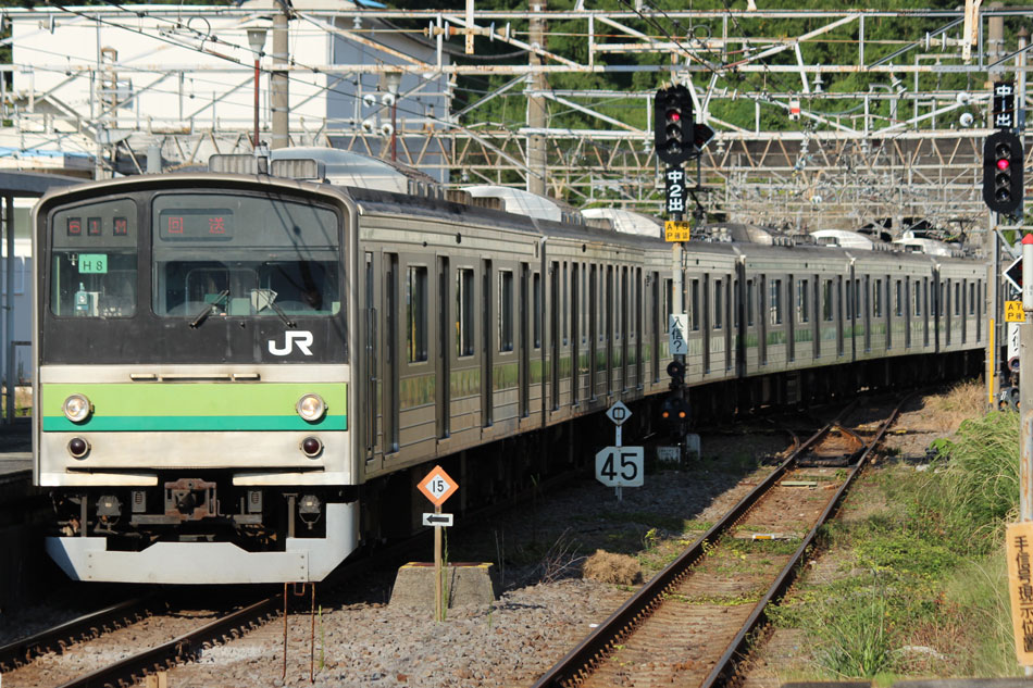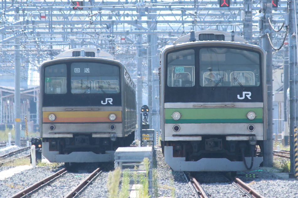 ・19日 16日に疎開先の京葉車両センターから返却されていたH22編成が、海外譲渡のためEF64 1031牽引で新津に配給されました。 ↑配9766レ EF64 1031[長岡]+205系H22編成8B 譲渡配給@保土ヶ谷〜横浜間 ・20日 15日から宇都宮に疎開していたH8編成が返却され、交代でH2編成が小山に疎開しました。 ↑回9676M 205系H8編成8B 宇都宮疎開返却@久喜〜新白岡間 ↑回9671M 205系H2編成8B 小山疎開@栗橋〜古河間 ・23日 まずは茅ヶ崎に疎開しているH27編成を撮影。横浜線の海外譲渡も終盤にさしかかり、南武線の置き換えが始まっていました。 H8編成が湯河原に疎開しました。JR東海車との並びは国府津と熱海だけ。 ↑回9861M 205系H8編成8B 湯河原疎開@熱海 ↑回9860M&313系T3編成3B 普通"浜松行"@熱海 この後湯河原疎開は行われなかったため、この時が横浜線205系の最後の熱海入線となりました。 ↑同上 ・26日 23日に小山から返却されていたH2編成が、海外譲渡のためEF64 1031牽引で新津に配給されました。 ↑配9766レ EF64 1031[長岡]+205系H2編成8B 譲渡配給@五反田〜目黒間 期間中に撮影できなかった動きは以下のとおりです。 8月30日〜:H1編成が本郷台に一時疎開(5日置きに返却・疎開)。 9月15日〜20日:H8編成が宇都宮に一時疎開。 9月16日:H22編成が疎開先の京葉車両センターから返却。横浜線内、横浜線205系最終走行。 9月16日〜19日:H2編成が湯河原に一時疎開。 9月20日〜23日:H2編成が小山に一時疎開。 9月29日〜10月4日:H8編成が小山に一時疎開。 9月30日:H27編成が茅ヶ崎から尾久車両センターに疎開先変更。H17編成が疎開先の尾久車両センターから返却。
