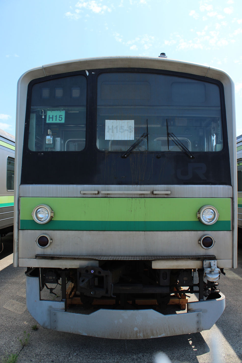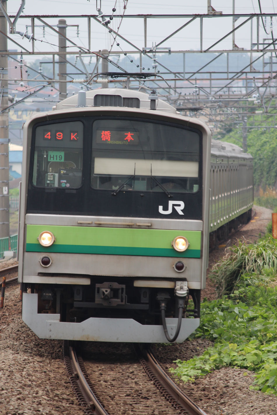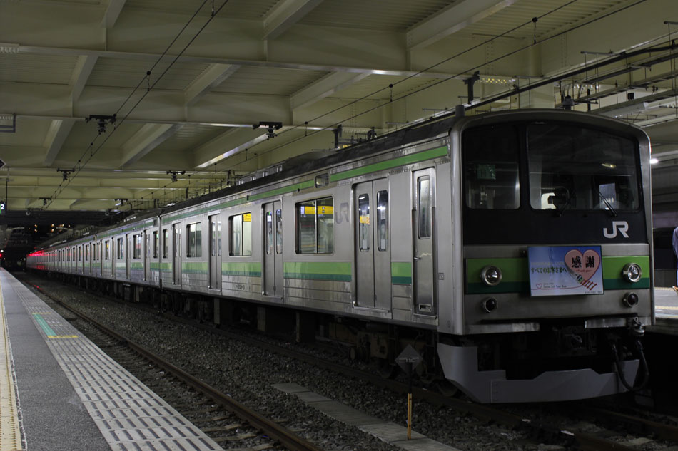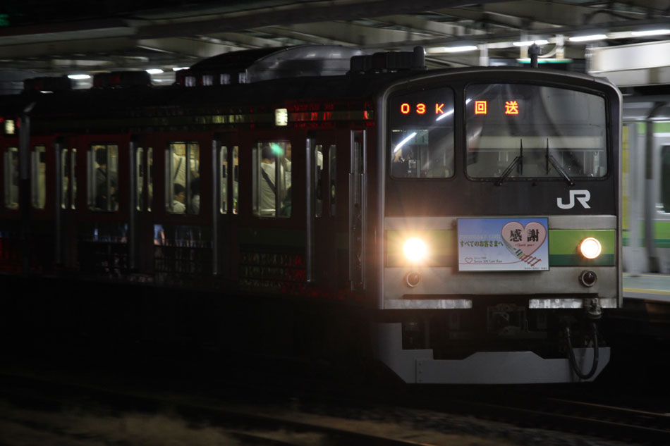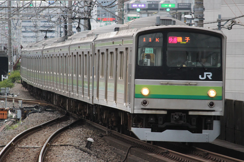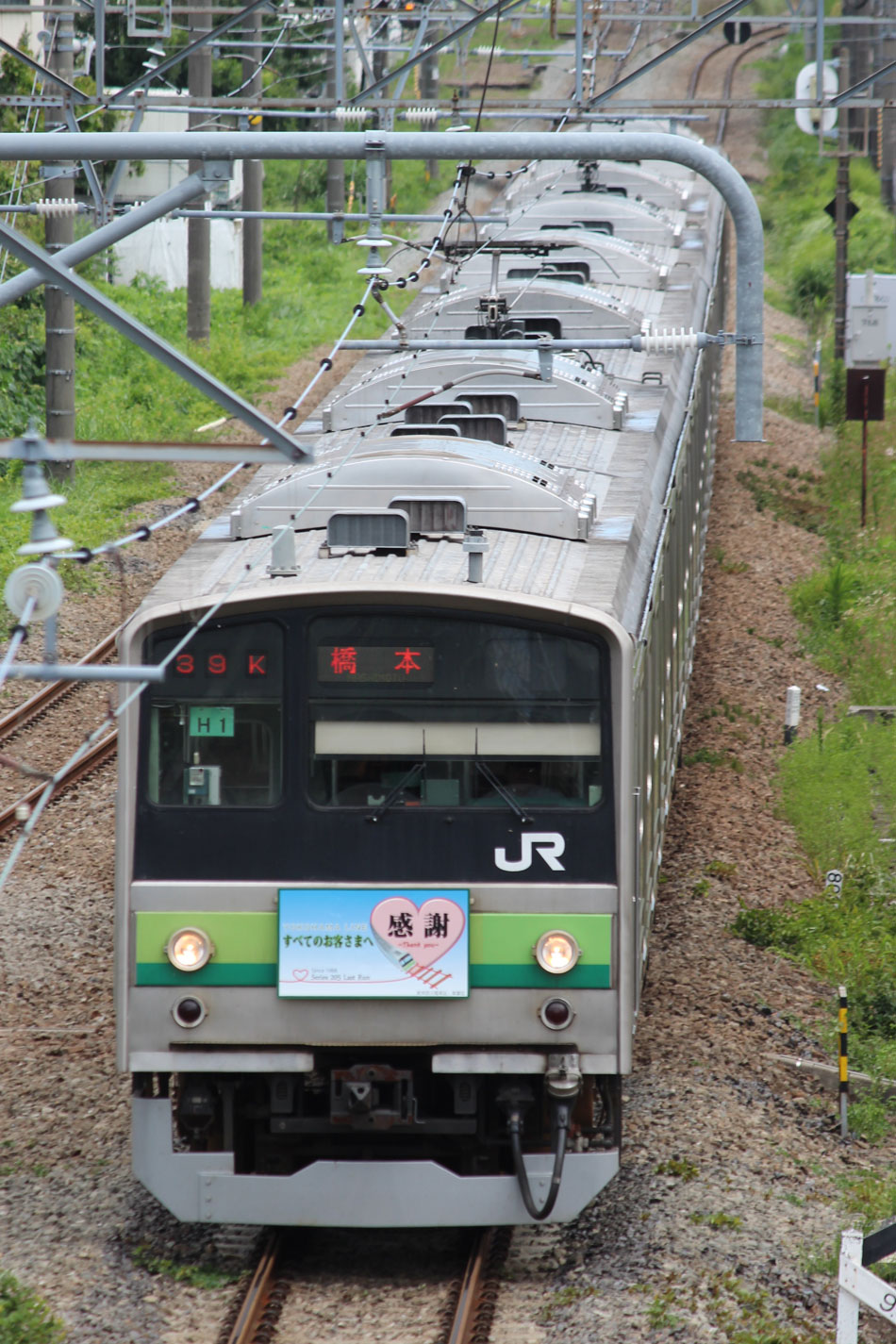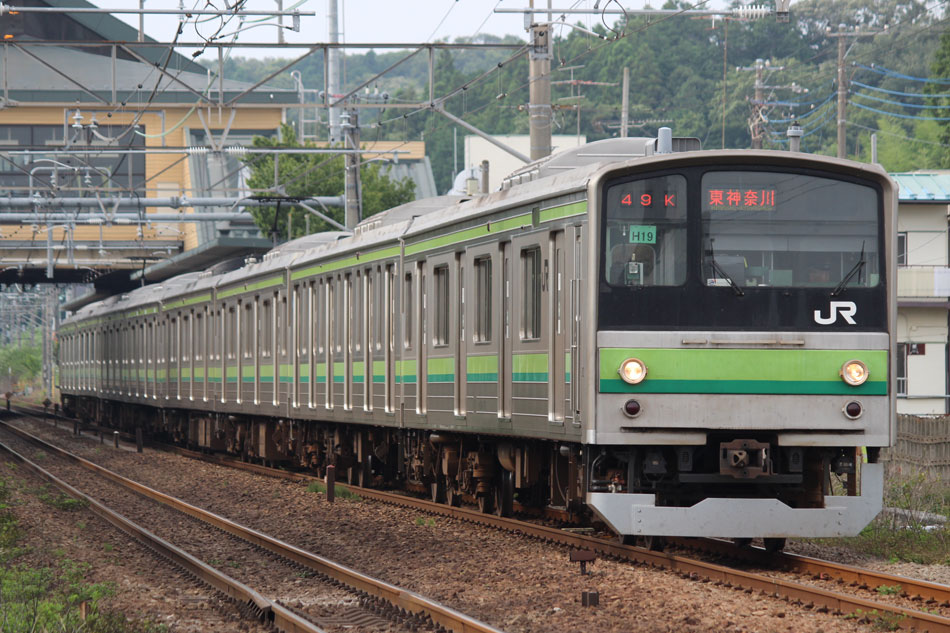 ・1日 7月29日に疎開返却されていたH23編成が、海外譲渡のためEF64 1032牽引で大船〜新津間で配給されました。 ↑配9766レ EF64 1032[長岡]+205系H23編成8B 譲渡配給@恵比寿〜渋谷間 また、H1編成に引退記念のヘッドマークが掲出され、03K(2)より運用を開始しました。 ↑2203K 各停"八王子行"@八王子 運用開始初便となった2203Kは八王子行きの最終電車、八王子駅に到着後はそのまま停泊。 ↑205系H1編成8B(HM掲出)@八王子(停泊) この日はムーンライト信州に乗って旅立ちましたので、この並びも。 ↑8421M 189系N103編成6B 快速"ムーンライト信州81号"&同上@八王子 2日・3日は新潟でJ-TREC新津〜新潟東港間の陸送や、東港で船積みを待つ205系を撮影してきました。こちらは別記事でまとめて掲載します。 ・3日 H1編成は23K。新潟帰りに町田に立ち寄って停泊する姿を撮影。 ↑205系H1編成8B(HM掲出)@町田(停泊) ・4日 H1編成は前日からの流れで39K。 ↑1139K 各停"橋本行"@矢部 橋本中線に疎開中のH28編成との並び。 ↑1238K 各停"桜木町行"&205系H28編成8B(疎開留置)@橋本 ・5日 H1編成は11K(1)で大船へ。 ↑810K 各停"大船行"@町田〜成瀬間 橋本中線に疎開していたH28編成が、疎開先を京葉車両センターに変更しました。鎌倉車両センターには入庫せず、町田駅で折り返しの上、直接新習志野に向かっています。 ↑回9591M 205系H28編成8B 京葉疎開@東浦和 かつて京葉線で共に活躍していた車両の出会い。 ↑同上&1*64E 209系M72編成8B 各停"府中本町行"@東浦和 ↑回9591M 205系H28編成8B 京葉疎開@越谷レイクタウン H1編成は11K(2)で鎌倉を出区。平日の11Kは、橋本派出ではなく京王線の高架下に停泊となります。 ↑205系H1編成8B(HM)@橋本付近(停泊) ・7日 H1編成は15K。ヘッドマークを付けての運用期間中、橋本派出で昼寝する運用に入ったのはこの日だけでした。10番線出区で残念賞。 ↑205系H1編成8B(HM) 出区@橋本派出 ↑1714K 各停"東神奈川行"@橋本〜相模原間 ・8日 5日に疎開先の国府津車両センターから返却されていたH14編成が、EF64 1032牽引で大船〜新津間で配給されました。 ↑配9793レ EF64 1032[長岡]+205系H14編成8B 譲渡配給@新宿〜池袋間 ↑同上@鴻巣 ↑同上@鴻巣〜北鴻巣間 H1編成は17K。終日運用ということで集中的に追っかけました。 ↑1116K 各停"東神奈川行"@相模原〜矢部間 ↑1217K 各停"橋本行"@矢部〜相模原間 ↑1316K 各停"桜木町行"@相模原〜矢部間 ↑1516K 各停"桜木町行" ↑1617K 各停"八王子行"@古淵〜淵野辺間 ↑1716K 各停"磯子行"@橋本〜相模原間 ・9日 H1編成は37K。橋本の七夕飾りを横目に八王子へ。 ↑1137K 各停"八王子行"@橋本〜相原間 ・10日 H1編成は39K。 ↑1438K 各停"東神奈川行"@長津田 ↑1539K 各停"橋本行"@成瀬〜町田間 台風接近の影響で、上りの特急"はまかいじ"が3時間以上遅れました。 ↑9064M 185系B3編成6B 特急"はまかいじ"@八王子(+192min) ・11日 H1編成は37K。837Kで町田行き表示を狙ったら表示負けしました…。 ↑936K 各停"桜木町行"@町田 ↑1136K 各停"東神奈川行"@淵野辺〜古淵間 ↑1536K 各停"東神奈川行"@片倉〜八王子みなみ野間 ↑2237K 各停"町田行"@町田 この期間の撮影分は以上です。撮影できなかった動きは以下のとおりです。 7月30日〜8月4日:H8編成が小山に一時疎開。 8月1日〜4日:H28編成が橋本中線に一時疎開。 8月4日〜9日:H27編成が小山に一時疎開。 8月5日〜8日:H8編成が湯河原に一時疎開。 8月5日:H027編成がJ-TREC横浜を出場し試運転。国府津車両センターにサハ204-114を除く7連で疎開していたH14編成が返却。 8月8日:03K(2)でH027編成が運用開始。 8月9日〜14日:H8編成が小山に一時疎開。