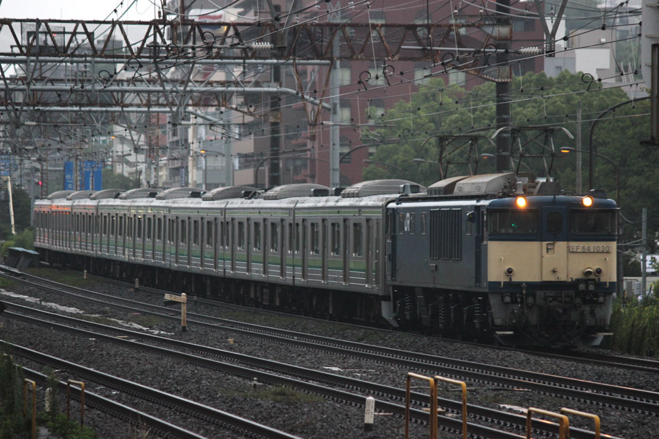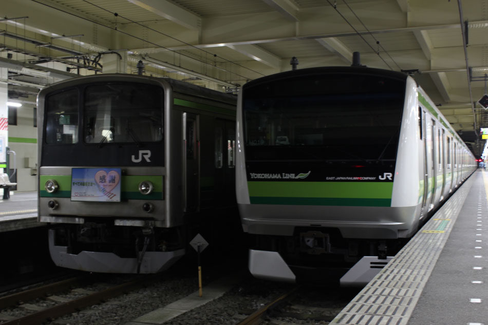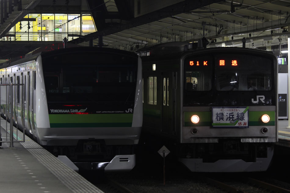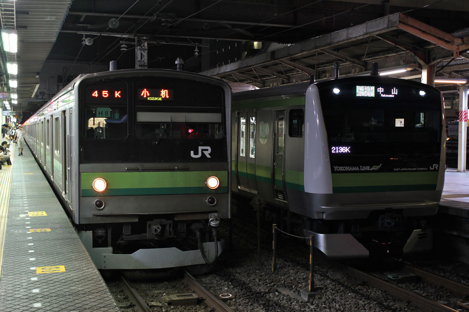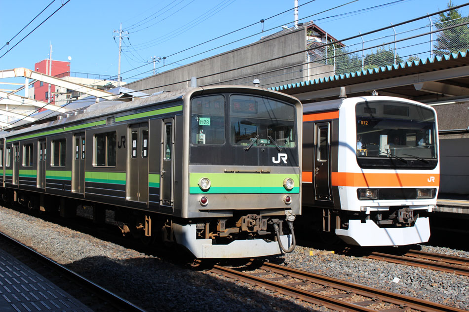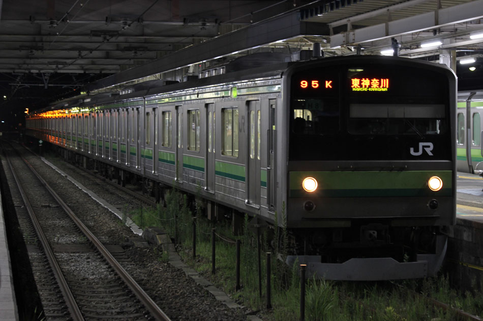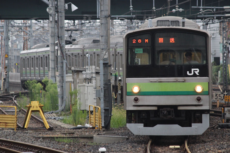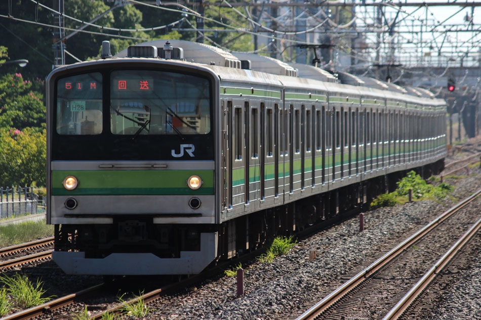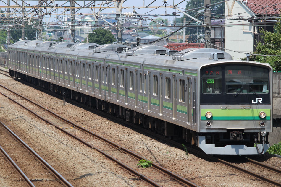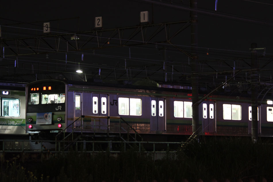 ・18日 15日に疎開先の茅ヶ崎から返却されていたH13編成が、EF64 1031牽引で大船〜新津間で配給されました。あいにくの雨により、かなり暗い中での旅立ちとなりました。 ↑配9766レ EF64 1031[長岡]+205系H13編成8B 譲渡配給@保土ヶ谷〜横浜間 ・19日 H021編成の下り方編成番号シールが何らかの原因で剥がされ、編成札のような仮シールが貼付されました。 ↑1248K@相模原 ↑1349K E233系H021編成8B 各停"橋本行"@古淵 ・20日 小山に疎開していたH2編成が返却されました。"ヒガハス"の区間で、地名の通り蓮の花とともに。 ↑回9546M 205系H2編成8B 疎開返却@東大宮〜蓮田間 H021編成の下り方はまだ仮シールのまま運用。 ↑1751K E233系H021編成8B 快速"八王子行"@矢部〜相模原間 ・21日 27K(1)でH28編成が大船へ。 ↑726K 205系H28編成8B 各停"大船行" ・22日 前日27K(1)で大船に送られていたH28編成が湯河原に疎開しました。 ↑回9851M 205系H28編成8B 湯河原疎開@大船 5月から国府津車両センターに疎開していたH25編成が返却回送されました。交代の疎開はありませんでした。 ↑回9820M 205系H25編成8B 疎開返却@藤沢 ・24日 朝の町田行き運用を撮影。運用中だったH8編成とH27編成がどちらも町田行きに充当されました。 ↑753K 205系H8編成8B 各停"町田行"@町田 ↑705K E233系H018編成8B 各停"町田行"@成瀬〜町田間 ↑725K 205系H27編成8B 各停"町田行"@成瀬〜町田間 ・25日 22日に疎開先の国府津車両センターから返却されていたH25編成が、EF64 1031牽引で大船〜新津間で配給され… ↑配9766レ EF64 1031[長岡]+205系H25編成8B 譲渡配給@原宿 被られました。 ↑同上(後追い) ・26日 日産スタジアムでのももいろクローバーZコンサート開催に伴い、臨時列車が運転されました。E233系は初、205系は最後の小机臨充当となります。 ↑9106K E233系H008編成8B 各停"東神奈川行"@中山 この日の205系は1編成のみ。H8編成が45Kで臨時運用に入りました。 ↑9195K 205系H8編成8B 各停"小机行"@東神奈川 ↑9155K E233系H023編成8B 各停"小机行"@東神奈川 この時のダイヤでは、東神奈川で小机行きと中山行きの並びが展開されました。臨時列車が東神奈川で並ぶのは非常に珍しい光景です。 ↑9245K 205系H8編成8B 各停"小机行"&9237K E233系H011編成8B 各停"中山行"@東神奈川 E233系にとっては初めての臨時中山行き充当でした。 ↑9237K E233系H011編成8B 各停"中山行"@東神奈川 ↑9294K 205系H8編成8B 各停"東神奈川行"@小机 23Kも1往復延長。 ↑9223K E233系H002編成8B 各停"町田行"@中山 ↑回9206K E233系H008編成8B 回送@中山 ・27日 前日に引き続き、日産スタジアムでコンサートが開催されたため臨時列車が運転されました。この日はH8編成が07K(撮影せず)、H27編成が23Kで臨時運用に入りました。 通常では町田で停泊となる2123K、この日は東神奈川行きとしてもう一往復。 ↑2123K 205系H27編成8B 各停"町田行"@町田 前日撮っていなかった列番の町田行きを中山にて。 ↑9247K E233系H012編成8B 各停"町田行"@中山 9247Kは町田駅到着後、折り返し回送に。 ↑回9246K E233系H012編成8B 回送@町田 普段より1時間長い仕事を終えて、今宵の寝床に到着。 ↑9223K 205系H27編成8B 各停"町田行"@町田 ・29日 4月から京葉車両センターに疎開していたH23編成が返却されました。交代の疎開はありませんでした。 ↑回9592M 205系H23編成8B 疎開返却@東所沢〜新秋津間 ↑回9451M 205系H23編成8B 疎開返却@片倉〜八王子みなみ野間 J-TREC新津事業所で製造されたH015編成が、EF64 1030牽引で越後石山〜大船間で配給されました。この編成を以て新津での製造が完了。 ↑配9774レ EF64 1030[長岡]+E233系H015編成8B 配給@保土ヶ谷〜東戸塚間 ・30日 同時に2編成が最終運用を迎えました。03K(1)でH8編成が大船へ。 ↑702K 205系H8編成8B 各停"大船行" 11K(1)でH27編成が大船へ。 ↑810K 205系H27編成8B 各停"大船行"@相模原 この期間の撮影分は以上です。撮影できなかった動きは以下のとおりです。 7月15日〜20日:H2編成が小山に一時疎開。 7月16日〜21日:H1編成が本郷台に一時疎開。 7月21日〜8月25日:H2編成が本郷台に一時疎開(5日おきに検査目的の一時返却)。 7月22日〜25日:H28編成が湯河原に一時疎開。 7月28日〜8月1日:H1編成が湯河原に一時疎開。
