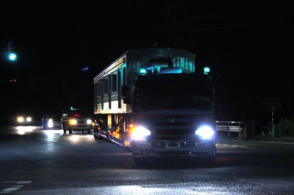 SL臨時快速を撮影して、新津駅に戻ってきました。 新津駅から少し行ったところに、J-TREC新津事業所(元・新津車両製作所)があり、金曜日に大船から配給された編成はここで線路から下ろされ、陸送準備が行われます。 ↑205系H23編成@J-TREC新津 撮影後は宿泊するキャンプ場にチェックインして仮眠。夜になってから自転車を走らせ、新潟東港周辺へ。新津に到着した編成は、金曜日・土曜日の2日間に分けて、トレーラーに載せられ新潟東港まで陸送が行われました。 ↑クハ205-83他陸送@新潟東港付近 翌日、再び新潟東港へ。青空の下、日本国内最後の時間を過ごす205系の姿がそこにはありました。この時は、H13・H15・H23・H25編成の計32両が船積みを待っていました。 記事を執筆している2015年10月現在、この全ての車両が、インドネシア・KRLジャボタベックで運用に就いています。先日は埼京線編成同士の衝突事故が発生するなど、なかなか余生は安泰とは言えないようですが、長野で解体された車両もある中で、最後までレールの上を走れるというのは幸運なことでしょう。 じっくりと見送った後、最寄り駅の黒山駅から電車に乗り、上越線経由でひたすら鈍行を乗り継ぎ帰宅。 ・おまけ H15編成は、配給直前に編成札が交換されたため、現役時代には見られなかったラミネート編成札での譲渡でした。
