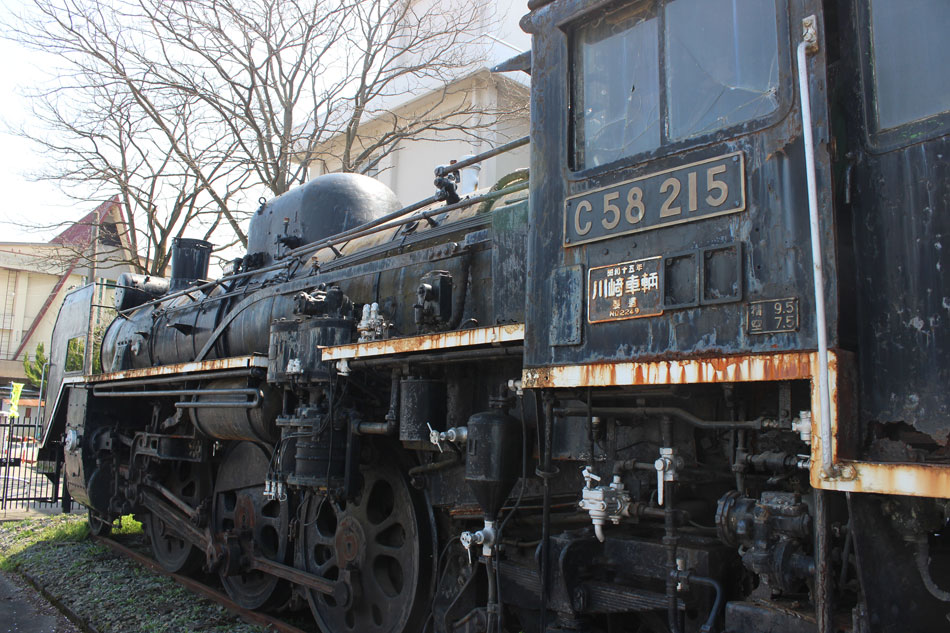 会津柳津駅のC11 244号機の後は、坂下小学校のC58 215号機を訪問。 ・車歴 製造年月日:1940年3月9日 製造所:川崎車輛 1940年3月9日 静岡機関区 1941年2月 稲沢機関区 1945年8月 高山機関区 1966年2月2日 遠江二俣機関区 1971年4月2日 小牛田運転区 1973年1月17日 小牛田運転区にて廃車 会津にゆかりはありませんが、SLブームの頃に保存されたのでしょう。当初は校庭に保存、その後この校舎裏に移設されたようです。柵に囲まれており、近づくことは出来ません。煙室ハンドルが欠損。 足回りは全て黒塗り。製造銘板やプレート類の欠損はありませんが、どうしても錆が目立ってしまいます。数年前に整備が行われて一時的に綺麗な時期もあったようですが、あまり質の良い塗料を使っていないのか、現在では荒廃しています。 炭水車側もプレート・後部灯は残存。 あまり人目につかない場所なので、人知れず解体なんてことにならないと良いのですが…。 この後は、日中線遊歩道のC11 63号機を訪問。続きます。