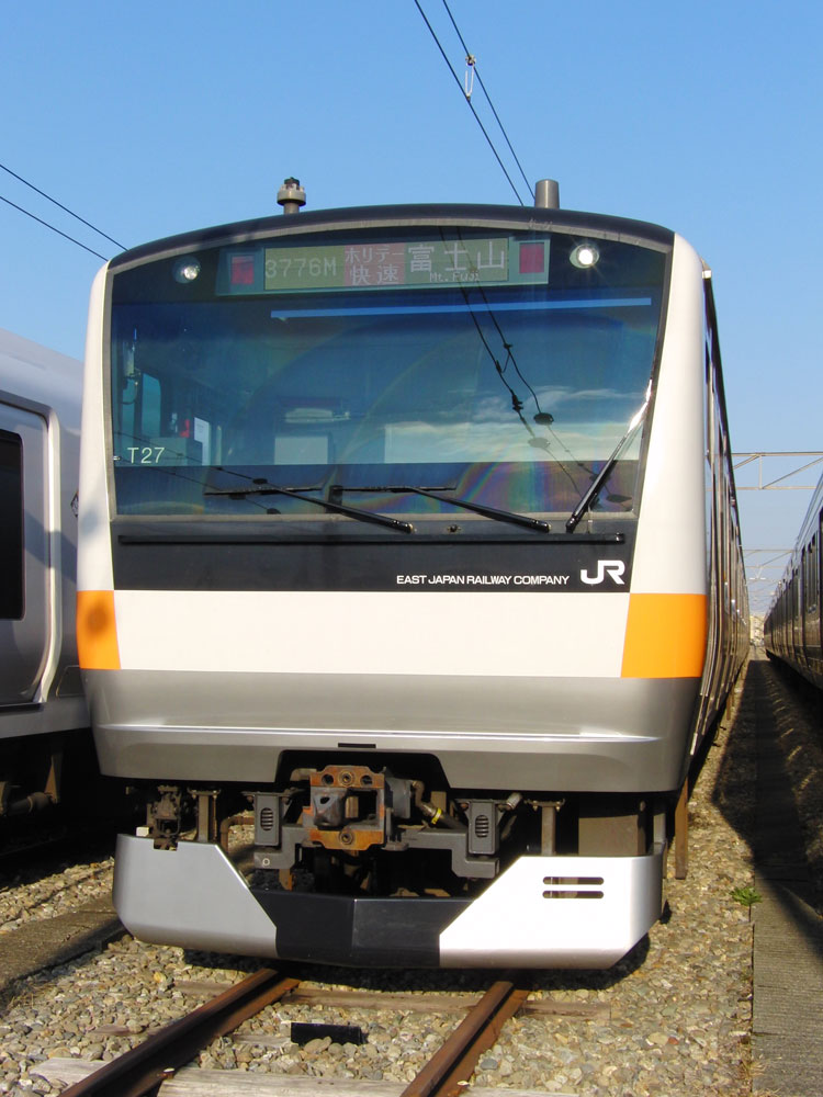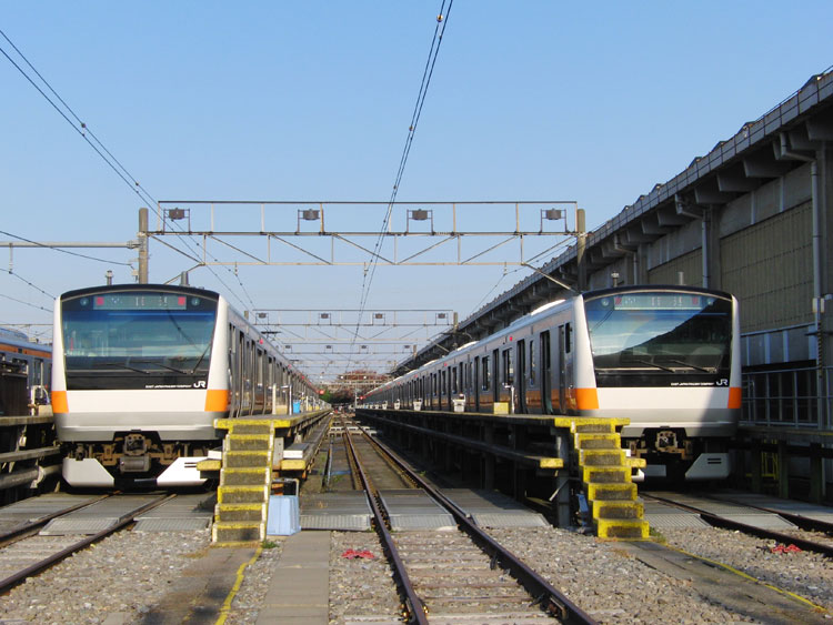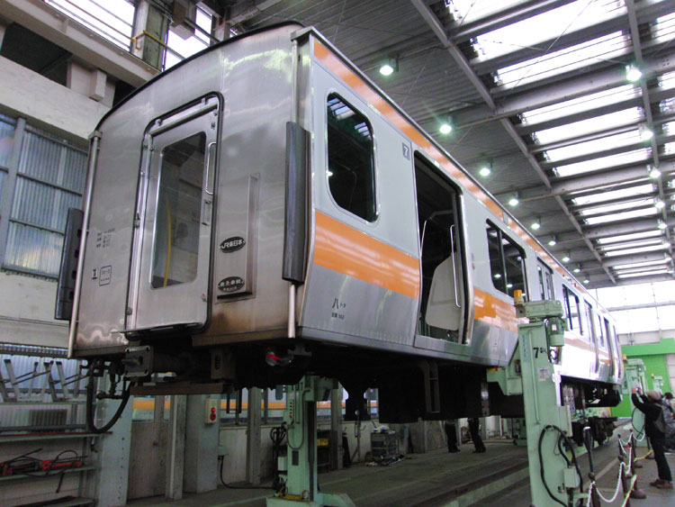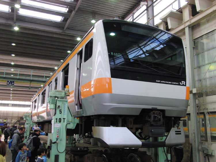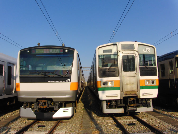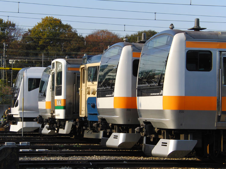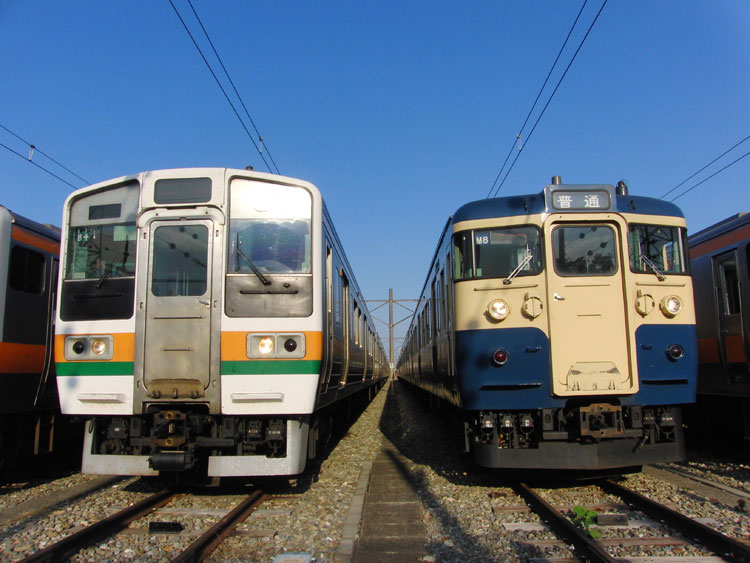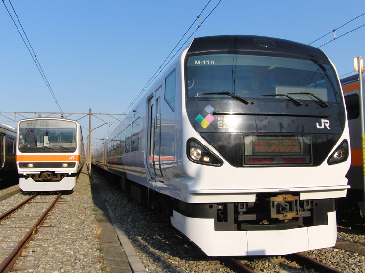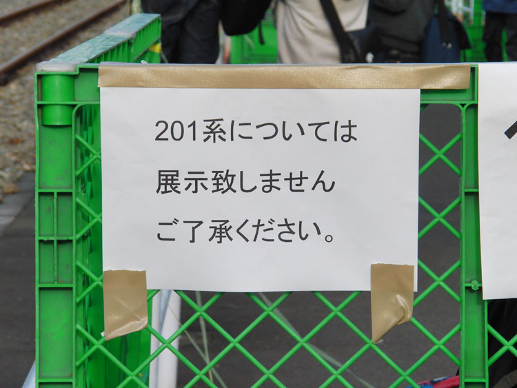 この日は、おなじみの豊田車両センターで久々の公開イベントが行われるということで、行ってきました。 まずは入口付近にて、残念ながら遠くで再会となったクハ201−1。激しく色落ちし、痛々しい状態・・・電源確保用のクモヤも長野送りになってしまい、今後の電源供給はどうするんでしょうかね。 ↑クハ201-1(展示なし) 検修庫内ではクハE232−525がジャッキアップ。 ↑クハE232-525(以上2点) さらに進むと、先日も回送で撮影した115系W2編成が車掌体験用車両として使われていました。 ↑115系W2編成(訓練車) M40編成が余剰となっており、最近は出番も少ない”訓練車”。 ↑同上 引退する前に白線を消してくれたら最高ですねぇ。 ↑同上 W2編成の隣にはT16編成も留置されていました。 ↑E233系T16編成 屋外に出てくると、いつもは「電車見る所」から眺めている風景が。 ↑E233系青664編成・青***編成(光の反射で見えませんでした) 展示車両の並び。 ↑"豊田車両センターまつり"展示車両 引退も近い115系の並び。 ↑115系M2編成・115系C12編成 撮影会中もひっきりなしに電車は出入庫しており、入庫してくるE233系をこんなアングルで撮ることもできました。さすがにド迫力。 ↑E233系T12編成 置き換える者と置き換えられる者の並び。211系は疎開目的、3連+3連に組み替えられて豊田にやってきました。現在も留置中。 ↑211系B4編成・115系M8編成 色は似ているものの今までほとんど出会わなかった2車両の並び。 ↑E233系T27編成・211系B4編成 左のE233系、よく見ると・・・?”3776M ホリデー快速 富士山"表示でした。 ↑E233系T27編成 「急行アルプス」表示のE257系と209系M72編成。 ↑E257系M-110編成・209系500番台M72編成 見れるようでなかなか見られない珍しい3並び。 ↑E231系800番台K5編成・E231系B5編成・209系500番台M72編成 その隣には、”快速 箱根ケ崎"表示のT9編成。 ↑E233系T9編成 115系M2編成も入庫してきました。 ↑115系M2編成 普段中央線で活躍する車両に特化したイベントで大変良かったと思います。 この後は、中央郵政研修所のオユ10 2555を訪問。続きます。 −おまけ− 「201系については展示いたしません。」 こちらはほとんど皆さんスルーしていましたが・・・201系のスカートを使用した立ち入り禁止標識。どの編成のものか、はたまた予備のものを使ったのか分かりませんが。 ↑以上、全て豊田車両センターまつりにて撮影。 PR コメントを投稿する