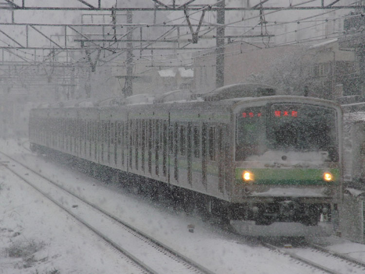 この日は、低気圧接近により首都圏でも大雪となり、年に数回の雪景色が見られました。 今回も横浜線の記録に徹することに。午前中から激しく雪が降ったのは珍しいですね。雪のせいで編成番号は大半が確認できませんでした。 ↑1038K 205系H**編成 快速"桜木町行" ↑1102K 205系H10編成8B 各停"桜木町行" ↑1104K 205系H6編成8B 各停"東神奈川行" ↑1124K 205系H26編成8B 快速"桜木町行" ↑1134K 205系H**編成8B 各停"桜木町行" ここまで撮影して一旦帰宅。雪がさらに降り出し、遅延が発生し始めたということで再出撃。 一発目に来た列車は何と立ち往生。この場所で5〜6分止まってましたね。 ↑1304K 205系H6編成8B 各停"桜木町行" 後続の1302Kは約10分遅れ。 ↑1302K 205系H10編成8B 各停"東神奈川行"(+10min) 軽く吹雪いてきており、駅ではしばらく上りが来ないことをアナウンスしていたので帰宅して、雪が収まってきたのでまたまた出撃。 ↑1314K 205系H**編成8B 各停"東神奈川行"(+24min) 最後は雪が止んだ夕方の淵野辺駅にて。 ↑1606K 205系H21編成8B 各停"東神奈川行"@淵野辺 新型車両E233系も来年春にデビューが予定され、もしかすると試運転では来年から雪景色が見られるかもしれません。 PR コメントを投稿する