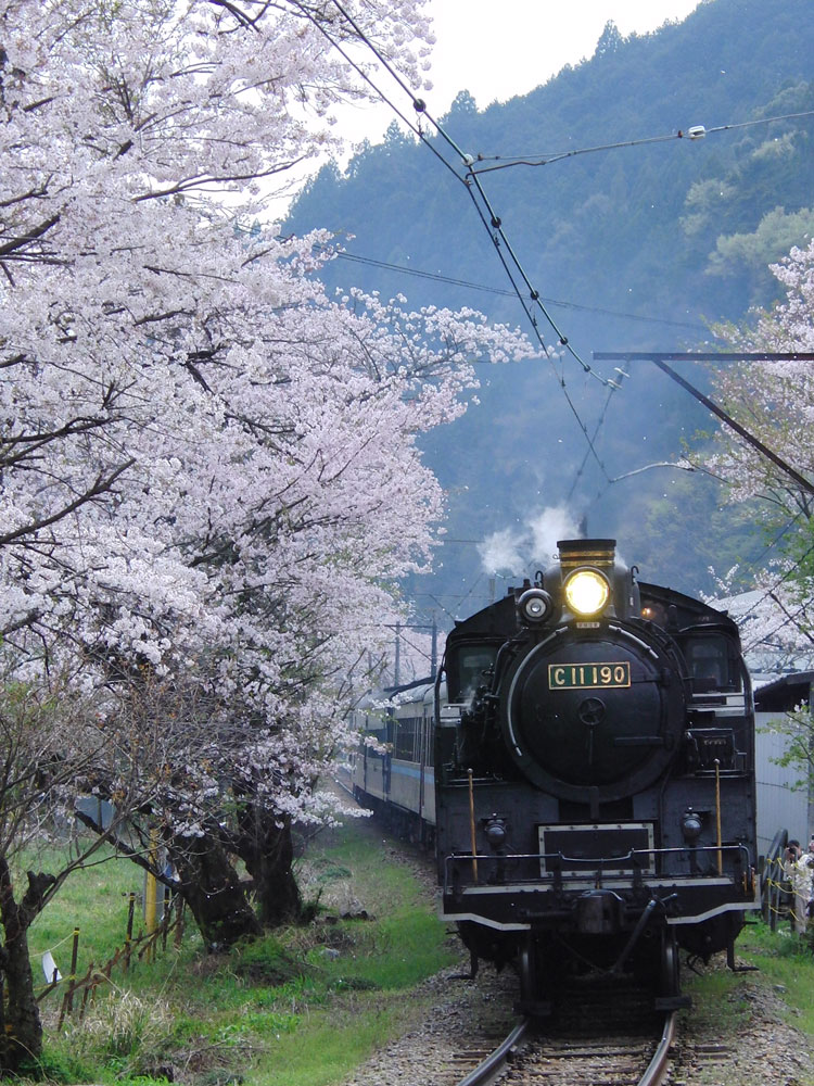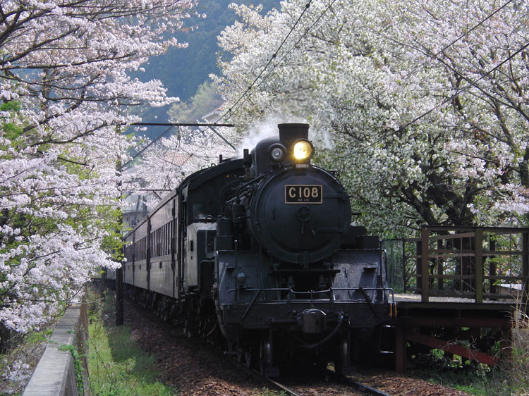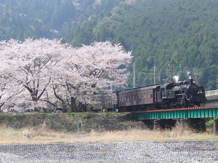 家山の桜と大井川鐵道SLかわね路号を撮影する