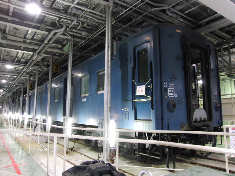 寝台特急"あけぼの"に乗車して、青森に到着しました。青森駅の改札を出て、まずは青函連絡船の保存施設「青函連絡船メモリアルシップ八甲田丸」へ。 青函連絡船として青函トンネル開通まで使用された八甲田丸が桟橋に残され、船内には青函連絡船に関する展示物が多数展示されています。 展示物の一つとして、車両甲板には青函連絡船にゆかりのある保存車両が収納されています。まずはヨ6798から。 ・車歴 製造年・製造所は不明。 貨物列車の車掌が乗務するための専用車掌車です。(案内板より) 八甲田丸の大きなヘッドマークを付けて保存されています。所属表記は「仙コタ」。 続いて2両が保存されているスユニ50。 ・車歴 製造年・製造所は不明。 国鉄の所有した郵便車の最終型で、荷物室と郵便室の両方を備えていました。昭和61年(1986)10月に鉄道貨物・鉄道郵便が廃止されたため廃車にされました。(案内板より) 数少ない国鉄郵便車の生き残り。この他には中央郵政研修センターのオユ10 2555を訪問したことがあります。こちらはスユニ50 509。 スユニ50 510。こちらの車両は車内灯が点けられていますが、車内への立ち入りはできません。 郵便車を表す郵便マーク。 続いてキハ82 101。 ・車歴 製造年 1965年 製造所 富士重工 昭和36年(1961)10月の白紙ダイヤ改正で、全国の非電化区間に快適な特急の旅をもたらした、国鉄動力近代化の中心となった特急用のディーゼルカーです。(案内板より) 函館運転所に所属していたキハ82の先頭車。青函連絡船と接続する道内の特急列車として運用されました。 特急シンボルマークが紛失し、痛々しい姿になっています。盗難のためと思われますが、某鉄道部品販売店のHPに画像が上げられており、詳細は不明。 こちらの車両も車内灯が点けられているものの、車内には入れません。 妻面。国鉄銘板が紛失。所属表記は函ハコ、検査表記は59-6 五稜郭車セ。 続いてDD16 31。 ・車歴 製造年月日 1974年4月25日 製造所 川崎重工 1974年4月25日 長万部機関区 1980年10月1日 五稜郭車両センター 1986年3月31日 五稜郭車両センターで廃車 線路状態の良くない簡易線区(低規格線)へ入線できるよう軸重(レールにかかる機関車の重さを対の車輪であらわしたもの)を軽くしたディーゼル機関車で、全国で幅広く使われていました。(案内板より) 青函連絡船とは関係がありませんでしたが、北海道ゆかりの車両として保存されたのでしょうか。製造からたった12年しか使われなかった少し不遇なカマ。DD16は現在でも長野と若桜鉄道で現役ですね。1エンド側はライトが紛失。 こちらは2エンド側。ヒ834と連結。 最後に4両が保存されているヒ600。 ・車歴 不明。 連絡船の中に、車両を出し入れする時に使用された可動橋にかかる重量を少なくするため、機関車と出し入れする車両の間に連結された出し入れ専用の貨車で、控車の名称を持っています。(案内板より) ヒ833。 ヒ834。 他の2両は展示位置が悪く撮影できず。屋内に保存されているためどの車両も車体の状態は良好ですが、あまりにも人目につかない場所にあるのと、複雑な構造のために整備が難しそうなのが難点。八甲田丸自体にだいぶ痛みが出ているので、今後閉館・解体とならないかが心配です。 このほかの船内の展示物。青函連絡船に関する品々や北海道の生活品等が展示されている「青函ワールド」(船の科学館にあったものとほぼ同じもの)。 グリーン席の座席が一部残され、青函トンネル建設時のVTRが上映されています。羊蹄丸もそうでしたが、当時の客室の雰囲気があまり残されていないのは残念です。 操舵室。 上からは青森ベイブリッジが見えました。 この後は、青森駅に戻って、天理臨を撮影するため奥羽本線に乗車します。続く。 PR コメントを投稿する