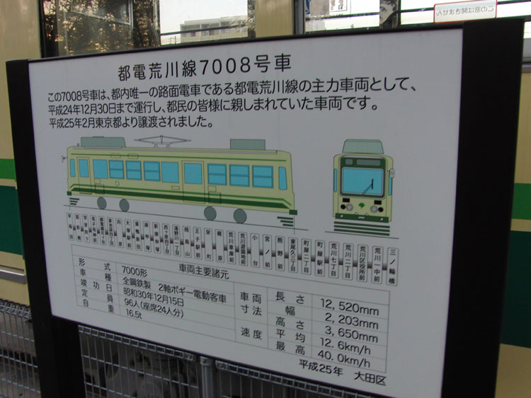 鎌倉踏切でEF66 27牽引の5052レが被られた後は、大田区萩中公園の3両の保存車を訪問。 まずは都電7008号車から。 ・車歴 製造年月日 1955年12月15日 製造所 アルナ工機(車体) 2012年12月28日〜 「おつかれさま」マークを掲出して運転 2012年12月30日 都電荒川線での運用終了 2013年2月17日 荒川車庫にてお別れ撮影会開催 この7008号車は、都内唯一の路面電車である都電荒川線の主力車両として、平成24年12月30日まで運行し、都民の皆様に親しまれていた車両です。 平成25年2月東京都より譲渡されました。(案内板より) 案内板はこちら。 かつて都電7502号車が保存されていた公園に、2013年から新たに保存されました。保存に際してワイパーや一部機器の撤去が行われています。 方向幕にもある通り、この公園の別名は「ガラクタ公園」、先代の7502号車は荒れに荒れ、保存末期にはホームレスも住み着き幽霊のような状態だったようですが、現在では巡回する警備員が配置されていることと公開時間が決められているため、綺麗な状態で残っています。 車内、つり革は昨年11月時点ではほぼ全て残っていました。 7502号車のような姿にならないことを祈るばかりです。 続いて、東武鉄道34号機。 ・車歴 製造年 1914年 製造所 ベーヤー・ピーコック社 1966年6月26日 東武佐野線でさよなら運転 1966年7月 東武鉄道にて廃車 この蒸気機関車は1914年(大正3年)にイギリス・マンチェスターの「ベーヤー・ピーコック社」で製造されたもので、1966年(昭和41年)の9月頃まで東武鉄道で最後の蒸気機関車として活躍していました。 東武鉄道の厚意により、将来で電化で姿を消す運命にある蒸気機関車を、子供達の教材として区が譲り受けたものです。 平成8年9月、老朽化が進み痛みが目立つため、大改修工事を実施いたしました。 生まれ変わった蒸気機関車をより一層可愛がって下さい。(案内板より) 1966年まで残った東武鉄道最後の蒸気機関車、引退後は縁がない大田区に保存されました。国鉄5600形とほぼ同形機、屋根もあり状態は良好です。 「のぼらないでください」と書かれているものの、訪問時には子供がテンダの上に上っていました。車体に痛みが出ないか心配です。 後ろから。 最後に国鉄貨車移動機。 ・車歴 製造年 1955年 製造所 加藤製作所 駅の構内や工場内で車両の入換作業やトロを牽引して保線作業等に使用していました。(案内板より) 公園の隅に保存されている移動機。 キャブ内は自由に立ち入りが出来るため、ほとんどの部品が欠損していました。 最寄り駅:京急空港線 大鳥居駅 この日はこれにて帰宅。 この日はこれにて帰宅。 PR コメントを投稿する