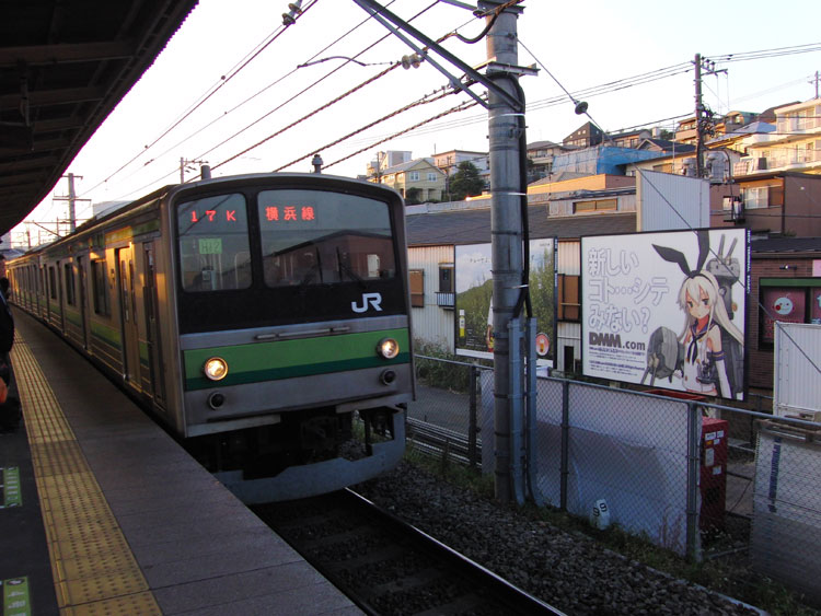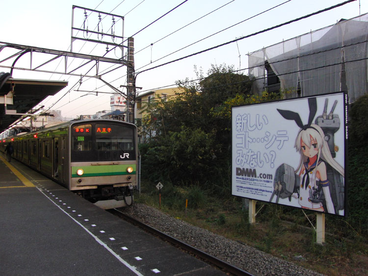 昨年の10月から12月にかけて、首都圏の鉄道各社の駅で、DMM.comのソーシャルゲーム「艦これ」の艦娘"島風"が描かれた広告看板が掲出され、横浜線内でも数駅で掲出されました。列車と絡められる位置に掲出された主な駅のみ掲載します。 [菊名駅] 上り線側八王子寄り中程に掲出。 ↑1516K 205系H12編成8B 各停"桜木町行" [長津田駅] 下り線側八王子方先端に掲出。 ↑1635K 205系H22編成8B 各停"八王子行" [淵野辺駅] 下り線側八王子寄り中程に掲出。 ↑1435K 205系H11編成8B 各停"橋本行" 横浜線の駅に掲出されるのはビールや不動産などわざわざ撮ることもないような広告が多い中、非常に珍しい形態の広告でした。 PR コメントを投稿する