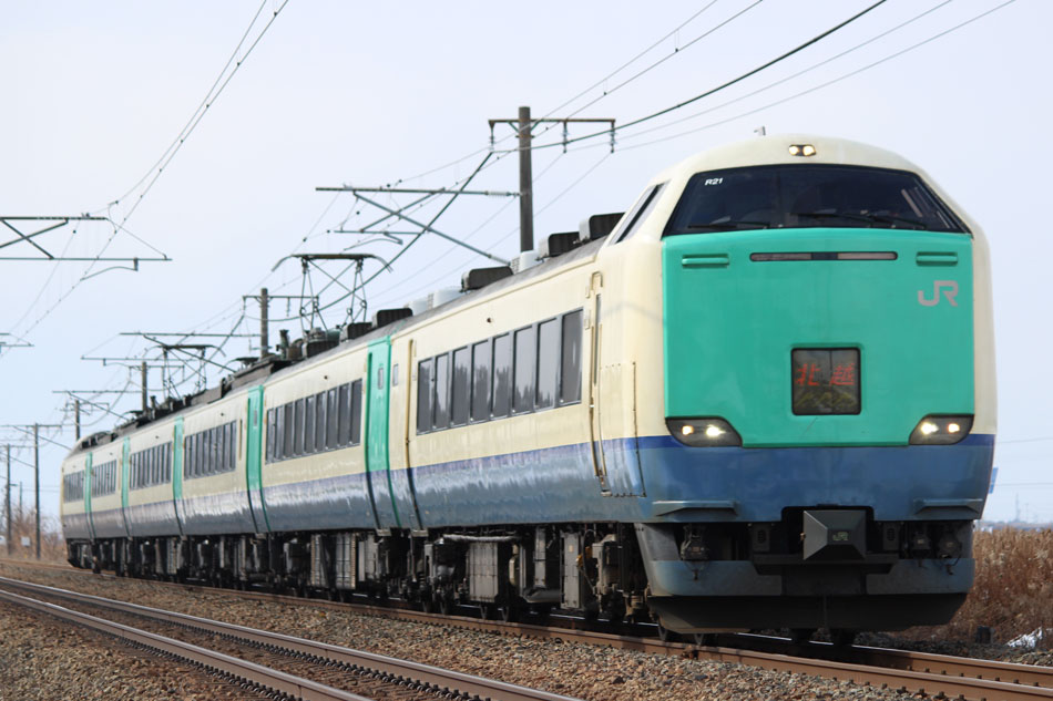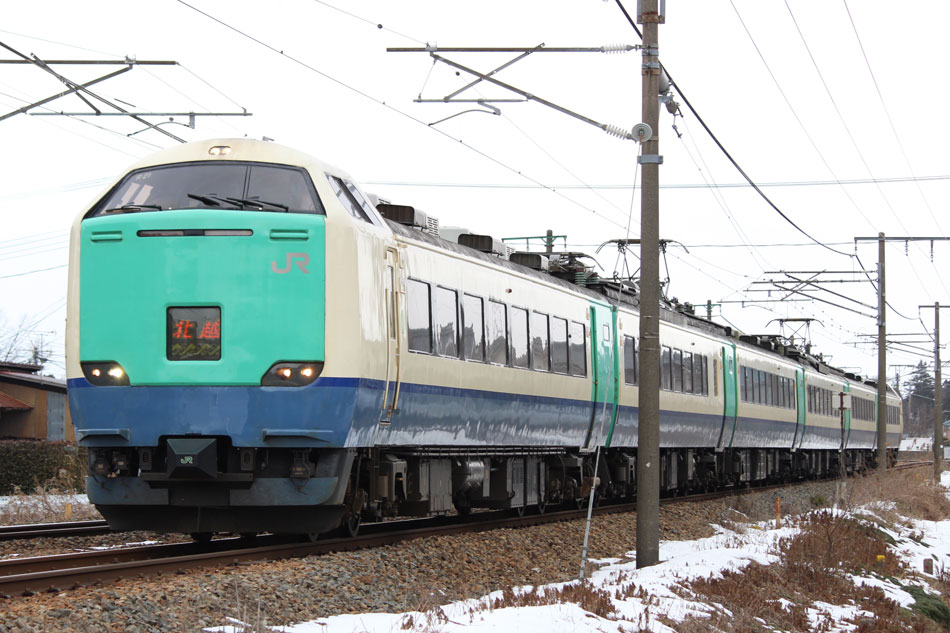 この日は新津車両製作所で製造された横浜線用E233系H004編成の公式試運転を撮影するため新潟に向かいましたが、他にも信越本線を走る様々な列車が撮影できました。 北越運用は全てR編成が入っていました。北越1号はR21編成。 ↑1051M 485系R21編成6B 特急"北越1号"@田上〜矢代田間 貨物列車は強風やら何やらで遅れており、何時の列車なのかさっぱり分からず。 ↑****レ EF510-22[富山]+コキ1*B 貨物列車@矢代田〜田上間 北越4号はR23編成。 ↑1054M 485系R23編成6B 特急"北越4号"@同上 平野部にはほとんど積雪は無かったものの、115系には着雪。 ↑435M 115系L11編成4B 普通"吉田行"@田上〜矢代田間 国鉄色のK2編成はくびき野運用に。T16・T17編成が廃車後は国鉄色の編成も頻繁にくびき野に充当されるようになりました。K2編成は6月で運用離脱、長野に廃車回送されています。くびき野も北陸新幹線開業と同時に廃止となるため、運転されるのは残すところ約1ヶ月。 ↑3373M 485系K2編成6B 快速"くびき野3号"@同上 相性が非常に悪かった富山機関区のEF81、やっとまともに撮影できました。昨年3月改正以降は大幅に運用が縮小されてしまいました。 ↑****レ EF81 726[富山]+コキ1*B 貨物列車@同上 ここまで撮影して移動。北越6号は1号の折り返し。 ↑1056M 485系R21編成6B 特急"北越6号"@古津〜矢代田間 さらに移動。こちらも遅れていたらしきEF81牽引の貨物列車、コンテナ満載な上に晴れました! ↑****レ EF81 718[富山]+コキ1*B 貨物列車@田上〜羽生田間 試6427Mの続行電は、115系最古参のクハ115-551を含むL3編成先頭。L3編成は長野車の転属に伴い、昨年7月に長野に廃車回送されています。 ↑441M 115系L3編成4B+S-13編成2B 普通"内野行"@羽生田〜田上間 くびき野2号も引き続きK2編成が充当。曇ってしまったのは残念でした。 ↑3372M 485系K2編成6B 快速"くびき野2号"@田上〜羽生田間 この後長岡から新幹線で帰京、石川町で横浜線を撮影して帰宅。 PR コメントを投稿する