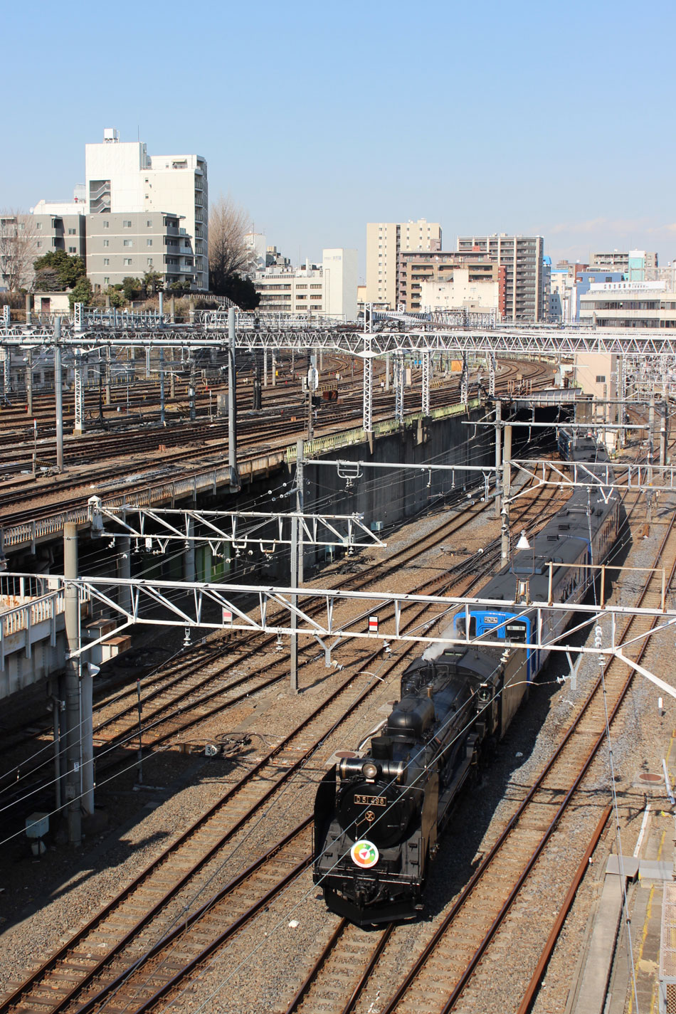 583系の伊東臨を撮影した後は、上野駅に移動。 この日は、フジテレビによる東日本大震災復興支援の大型企画として、釜石〜上野間で団体臨時列車"みちのくSLギャラクシー"が運転されました。乗客は被災地の方が招待され、4月から運転開始する"SL銀河"用客車(キハ141改造)を使用し、前日(7日)に釜石をC58 239牽引で出発、花巻駅から郡山駅まではED75 757、日付が変わって郡山駅から尾久駅までEF510-515がそれぞれ牽引し、最後の尾久〜上野間はD51 498が牽引する行程でした。特にSL牽引となる尾久〜上野間では、混乱を避けるため、跨線橋や山手線の駅に警備員配置、一部の沿道を封鎖するなど厳戒態勢が敷かれました。 地平ホームに入る列車を眺めることができる上野駅北側跨線橋は、三脚・脚立の使用は禁止されたものの封鎖はされず、多くの見物客や撮影者が歩道の幅いっぱいまで集まりました。企画の趣旨や番組構成には賛否両論あったものの、上野駅に入線するSLをこの目で見ることができたことは格別でした。 ↑9010レ D51 498[高]+キハ141系客車"SL銀河"4B+EF65 501[高] 団体臨時列車"みちのくSLギャラクシー"@上野付近 上野駅に到着後は、最後尾のP1牽引で尾久車セへ引き上げ。こちらも沿線は大混乱となっていたので、日暮里で通過を見送りました。 ↑回9618レ EF65 501[高]+キハ141系客車"SL銀河"4B+D51 498[高] 回送@日暮里 ↑(後追い) もしまた都内をSL牽引列車が走行することがあったとしたら、その時都心はどんな姿をしているのか。今から楽しみです。 この日はこれにて帰宅。 PR コメントを投稿する