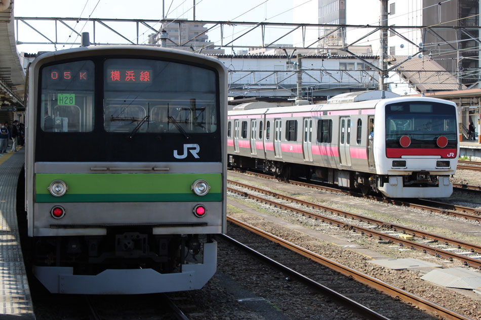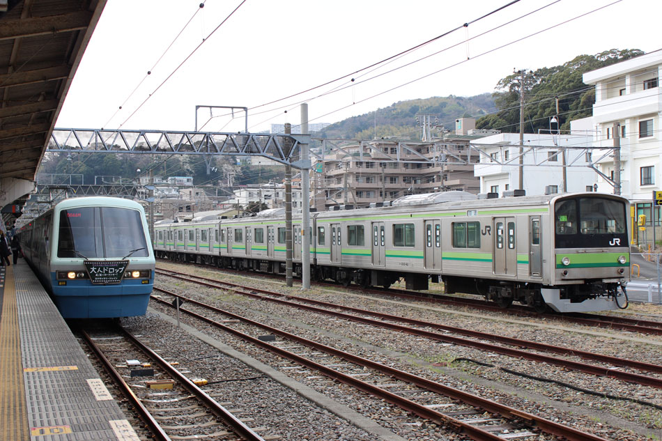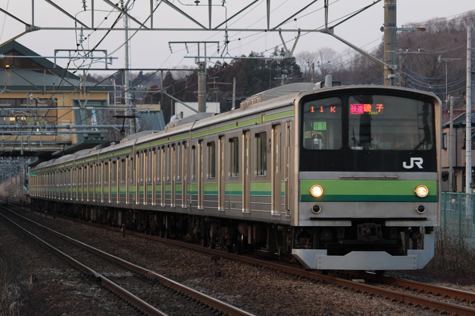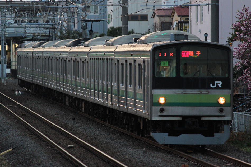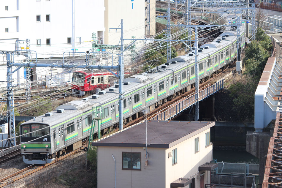 3月中〜下旬の横浜線撮影分です。 ・3月16日 ヘッドマーク掲出が3月末で終了となるH001編成は05K運用。 ↑1605K E233系H001編成8B(HM掲出) 各停"橋本行"@成瀬〜町田間 1750Kの快速磯子行き、改正後は1710Kになりました。この日はH5編成が充当。前日(15日)も狙いましたが、表示負け… ↑1710K 205系H5編成8B 快速"磯子行"@相原〜橋本間 ・17日 13日にJ-TREC横浜からの出場試運転が行われたH020編成が、2047Kで運用開始。全区間、行き先単独表示で運転されました。 ↑2047K E233系H020編成8B 各停"橋本行"@相模原 ・18日 朝夕のみの運用で、日中は橋本派出に入区となる15K(2)の電9からの出区シーンを撮影。 ↑1714K(出区) 205系H7編成8B 各停"東神奈川行"@橋本派出〜橋本間 ・21日 まずは朝の根岸線直通運用を根岸線内で。 ↑726K 205系H8編成8B 各停"大船行"@根岸〜磯子間(上記2点) 846Kは山手イタリア山庭園から。 ↑846K 205系H25編成8B 快速"大船行"@関内〜石川町間 ↑同上@石川町〜山手間 少し時間が開いてから、桜木町〜横浜間で撮り歩き。 ↑1306K 205系H22編成8B 快速"桜木町行"@横浜〜桜木町間 ↑1407K 205系H22編成8B 各停"八王子行"@同上 ↑1419K E233系H020編成8B 各停"八王子行"@同上 ↑1533K 205系H17編成8B 快速"八王子行"@同上 この日の1710KはH19編成でしたが、表示負けのため非掲載。 ・23日 1710KはH22編成が充当。 ↑1710K 205系H22編成8B 快速"磯子行"@相原 ・25日 この日は、2011年1月から車両故障により運用を離脱し、長らく京葉車両センターに留置されていたE331系AK1編成が、長野総合車両センターへ廃車のため配給されました。車両の詳細については後日別記事で書くとして、こちらでは八王子で見られたH28編成との並びを掲載します。 H28編成のうちサハを除く6両は、ご存知の通り元々京葉車両センターでM66編成として運用されていた車両で、一時期京葉線でE331系とも顔を合わせており、久々の再会になりました。まさかE331系の方が先に退役することになるとは、当時は誰が予想できたことでしょうか。 ↑配9722レ EF64 1031[長岡]+E331系AK1編成14B 配給&1404K 205系H28編成8B 各停"東神奈川行"@八王子(並び) H001編成は39Kに充当。到着後に入区となるため、東神奈川では「回送」表示で入線。 ↑1438K E233系H001編成8B(HM掲出) 各停"東神奈川行"@東神奈川 夕方の根岸線直通運用に205系が入っていたのでスナップ。 ↑1548K 205系H19編成8B 各停"磯子行"@関内〜石川町間 ↑1749K 205系H19編成8B 各停"八王子行"@関内〜桜木町間 ・26日 前日にJ-TREC横浜から出場し鎌倉に到着していたH021編成が、大船〜小田原〜茅ヶ崎〜小田原〜品川〜大船間(東海道貨物線・東海道線経由)で性能確認試運転を行いました。駅スタンプ、ドア広告は未貼付の状態でした。 ↑試9822M E233系H021編成8B 試運転@平塚〜茅ヶ崎間 ↑試9823M E233系H021編成8B 試運転@二宮 二宮駅付近では急制動試験のため一旦停止。 ↑同上 最後の上りは線路と海が近い区間の高台から。 ↑試9824M E233系H021編成8B 試運転@二宮〜大磯間 ・27日 新津車両製作所としては最後の車両となるH007編成の配給が新津〜大船間で運転されました。 ↑配9772レ EF64 1030[長岡]+E233系H007編成8B 配給@大正橋 また、H2編成が2号車のサハ204-102を除く7両編成で伊東に疎開されました。1両減車されたのは伊東駅の留置線容量の関係でしたが、1994年に6ドア車両が連結される以前を思い起こさせるスタイルでした。 ↑回9863M 205系H2編成7B(サハ204-102欠車)@国府津 ↑同上@熱海(上記2点) ・29日 疎開したH2編成の見物と花見を兼ねて伊東へ。満開の桜の木を横目にしばしの休息。 「リゾートドルフィン」塗装の2100系第3編成との並び。 ↑5644M 伊豆急2100系R-3編成7B("大人ドロップ"HM掲出) 普通"熱海行"&205系H2編成7B@伊東 また、夜には新子安〜東神奈川間で人身事故が発生し、横浜線の運行にも支障があるということで東神奈川〜小机間で運転見合わせ。小机行きの表示は出なかったので、小机でHM付きのH001編成と2123Kをバルブして帰宅。 ↑2111K E233系H001編成8B 各停"八王子行"@小机 ↑2123K 205系H17編成8B 各停"町田行"@同上 ・30日 1710KはH11編成。 ↑1710K 205系H11編成8B 快速"磯子行" ・31日 19KにH17編成が入ったので、平日しか見られない大船発の朝の横浜線下りを杉田坪呑で。 ↑819K 205系H17編成8B 各停"八王子行"@洋光台〜新杉田間 47K(1)はH4編成。 ↑846K 205系H4編成8B 各停"大船行"@大船 また、この日は横浜線沿線の桜が見頃を迎え、かつH001編成のヘッドマーク終日運用最終日。桜の撮影スポットで有名な寺尾トンネルの上には、205系最後の春ということもあって多くの撮影者が集まっていました。自分も混じって撮影することに。 ↑1142K 205系H6編成8B 各停"東神奈川行"@菊名〜大口間 ↑1204K 205系H12編成8B 各停"桜木町行"@同上 ↑1208K E233系H001編成8B(HM掲出) 快速"桜木町行"@同上 ↑1309K E233系H001編成8B(HM掲出) 各停"八王子行"@同上 撮影後は大戸踏切へ移動。桜とは関係ありませんが、東神奈川方のヘッドマークをほとんど順光で撮っていなかったこともありここで。 ↑1408K E233系H001編成8B(HM掲出) 快速"桜木町行"@相原〜橋本間 ↑1438K 205系H19