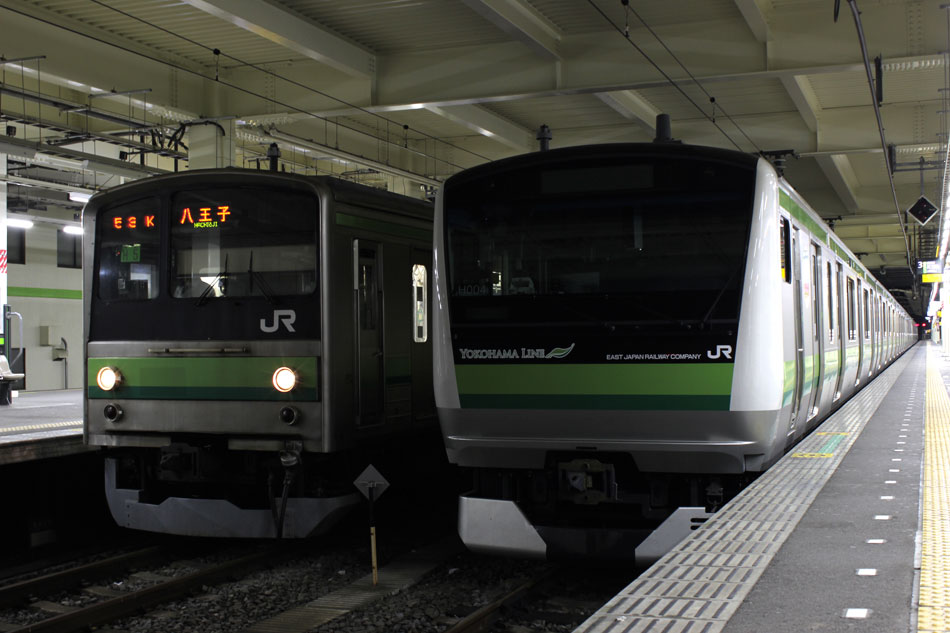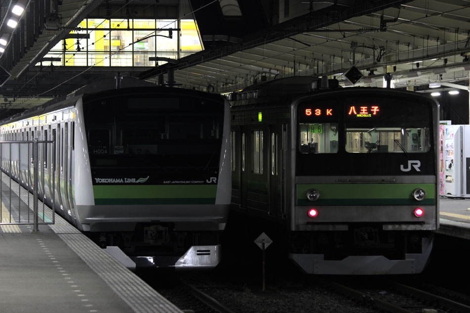 昨年4月4日〜4月13日の横浜線撮影分です。 ・4月4日 伊東駅構内に疎開していたH2編成(サハ204-102欠車、7両編成)が、鎌倉車両センターに返却回送されました。 ↑回9562M 205系H2編成7B(サハ204-102欠車)@網代〜伊豆多賀間 鎌倉車両センターで検査が行われ、当日の夕方には再び伊東へ疎開されました。 ↑回9563M 205系H2編成7B(サハ204-102欠車)@茅ヶ崎〜平塚間 この他、返却と疎開の合間に鳥山川で桜×横浜線を撮影。 ・6日 53K運用に入ったH5編成を早朝から撮影。 ↑453K 205系H5編成8B 各停"八王子行"&E233系H004編成8B@町田 ↑653K 205系H5編成8B 各停"八王子行"@八王子みなみ野 この後八王子に入線した583系を撮影してから南武線へ。2月に横浜線での運用を離脱後、増発対応のため南武線に転用されたナハ17編成(元H26編成)を撮影。南武線では唯一の原形顔LED式前面幕装備、号車札が横浜線時代の白いものであったりと特徴的な編成でしたが、結局E233系投入が始まる前に運用を離脱してしまったため、この時が最初で最後の撮影になってしまいました…。 ↑854F 205系ナハ17編成6B 各停"川崎行"@矢野口 ↑955F 205系ナハ17編成6B 各停"立川行"@久地〜宿河原間 ↑1054F 205系ナハ17編成8B 快速"川崎行"@宿河原〜久地間 この日はH4編成が小山から返却されました。交代でH13編成が小山に疎開されています。 ↑回9690M 205系H4編成8B@鶴見 ・8日 H6編成が橋本駅中線に疎開したという情報を聞き、橋本へ。橋本らしい光景を撮ることができました。 205×205×205×205×205×E233、の置き換え期ならではの並び。 京王9000×205×E233×205×205。 色の似た車両同士の並び。 ・13日 H6編成と入れ替わりに、H7編成が橋本中線に疎開回送されました。この日はなぜか全区間ハイビームでした。 ↑回9969M 205系H7編成8B@成瀬〜町田間 この他、撮影出来なかった動きは以下の通りです。 3月31日〜4月2日:H28編成が本郷台に一時疎開。 4月1日〜4月6日:H4編成が小山に一時疎開。 4月1日〜4月4日・4月4日〜4月8日:H2編成が伊東駅にサハ204-102を除いた7両編成で一時疎開。 4月2日:川越車両センターに疎開していたH002編成が返却。代わりにH12編成が川越車両センターに疎開。 4月2日〜4月7日:H7編成が本郷台に一時疎開。 4月4日:H002編成が47K(2)で運用開始。 4月7日〜4月12日:H19編成が本郷台に一時疎開。 4月8日:H9編成が尾久車両センターに疎開回送。尾久車両センターへの疎開は初。 4月8日〜13日:H6編成が橋本(業務2番)に疎開。置き換え関連での橋本駅疎開は初。 4月10日:H008編成がEF64 1032牽引で新津〜大船間で配給。 4月11日〜4月16日:H28編成が小山に一時疎開。 4月12日〜4月17日:H18編成が本郷台に一時疎開。 4月13日:H008編成が27K(2)で運用開始。 4月14日:H022編成がJ-TREC横浜を出場し試運転。 PR コメントを投稿する