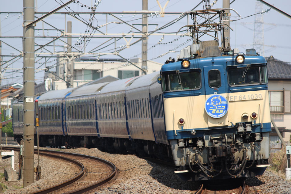 この日は、幕張メッセで開催される"ニコニコ超会議"に合わせて、大阪〜上野間で24系客車を使用した"ニコニコ超会議号"が運転されました。 本番の前に工臨も通過。 ↑工9774レ EF65 1115[田]+ロンチキA編成 高崎工臨返空@北鴻巣〜鴻巣間 この列車の運転は3年目となりましたが、例年と違って長岡〜上野間ではEF64が先頭に立ちました。 ↑9716レ EF64 1030[長岡]+24系25形客車6B 団体臨時列車"ニコニコ超会議号"@同上 昨年の夏の運転 を以て"あけぼの"の臨時運行が終了し、青森の24系客車は全て休車となったため、2015年はブルトレ超会議号の運転はなく、代わりに"華"を使用したミステリー列車が運転されたため、ブルートレインを使用した列車としては昨年が最後の運転となりました。 この後横浜線205系の疎開を撮影するため宇都宮線に転戦しましたが、ダイヤ乱れの影響で通常設定のない"小山行き"が運転されていました。 547M E233系D16編成+L**編成15B 普通"小山行"@栗橋〜東鷲宮間 この日の撮影は以上となります。 PR コメントを投稿する
