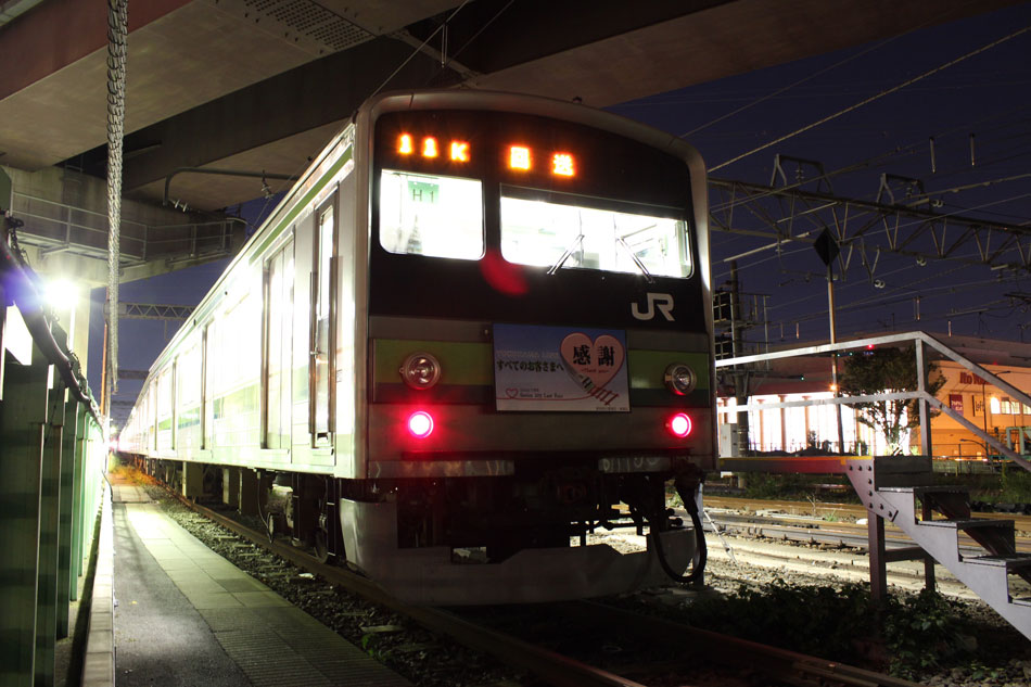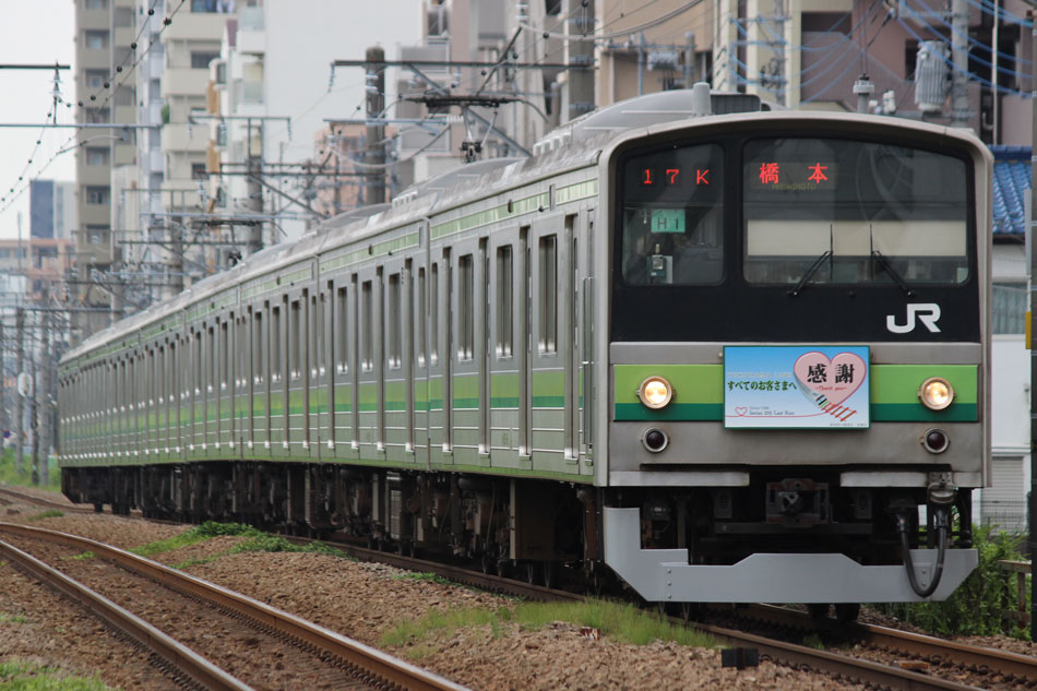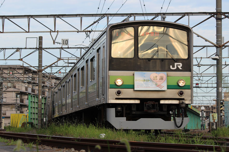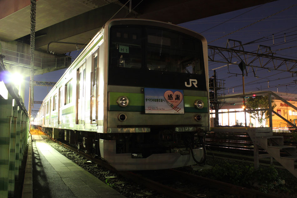・1日 7月29日に疎開返却されていたH23編成が、海外譲渡のためEF64 1032牽引で大船〜新津間で配給されました。 ↑配9766レ EF64 1032[長岡]+205系H23編成8B 譲渡配給@恵比寿〜渋谷間 また、H1編成に引退記念のヘッドマークが掲出され、03K(2)より運用を開始しました。 ↑2203K 各停"八王子行"@八王子 運用開始初便となった2203Kは八王子行きの最終電車、八王子駅に到着後はそのまま停泊。 ↑205系H1編成8B(HM掲出)@八王子(停泊) この日はムーンライト信州に乗って旅立ちましたので、この並びも。 ↑8421M 189系N103編成6B 快速"ムーンライト信州81号"&同上@八王子 2日・3日は新潟でJ-TREC新津〜新潟東港間の陸送や、東港で船積みを待つ205系を撮影してきました。こちらは別記事でまとめて掲載します。 ・3日 H1編成は23K。新潟帰りに町田に立ち寄って停泊する姿を撮影。 ↑205系H1編成8B(HM掲出)@町田(停泊) ・4日 H1編成は前日からの流れで39K。 ↑1139K 各停"橋本行"@矢部 橋本中線に疎開中のH28編成との並び。 ↑1238K 各停"桜木町行"&205系H28編成8B(疎開留置)@橋本 ・5日 H1編成は11K(1)で大船へ。 ↑810K 各停"大船行"@町田〜成瀬間 橋本中線に疎開していたH28編成が、疎開先を京葉車両センターに変更しました。鎌倉車両センターには入庫せず、町田駅で折り返しの上、直接新習志野に向かっています。 ↑回9591M 205系H28編成8B 京葉疎開@東浦和 かつて京葉線で共に活躍していた車両の出会い。 ↑同上&1*64E 209系M72編成8B 各停"府中本町行"@東浦和 ↑回9591M 205系H28編成8B 京葉疎開@越谷レイクタウン H1編成は11K(2)で鎌倉を出区。平日の11Kは、橋本派出ではなく京王線の高架下に停泊となります。 ↑205系H1編成8B(HM)@橋本付近(停泊) ・7日 H1編成は15K。ヘッドマークを付けての運用期間中、橋本派出で昼寝する運用に入ったのはこの日だけでした。10番線出区で残念賞。 ↑205系H1編成8B(HM) 出区@橋本派出 ↑1714K 各停"東神奈川行"@橋本〜相模原間 ・8日 5日に疎開先の国府津車両センターから返却されていたH14編成が、EF64 1032牽引で大船〜新津間で配給されました。 ↑配9793レ EF64 1032[長岡]+205系H14編成8B 譲渡配給@新宿〜池袋間 ↑同上@鴻巣 ↑同上@鴻巣〜北鴻巣間 H1編成は17K。終日運用ということで集中的に追っかけました。 ↑1116K 各停"東神奈川行"@相模原〜矢部間 ↑1217K 各停"橋本行"@矢部〜相模原間 ↑1316K 各停"桜木町行"@相模原〜矢部間 ↑1516K 各停"桜木町行" ↑1617K 各停"八王子行"@古淵〜淵野辺間 ↑1716K 各停"磯子行"@橋本〜相模原間 ・9日 H1編成は37K。橋本の七夕飾りを横目に八王子へ。 ↑1137K 各停"八王子行"@橋本〜相原間 ・10日 H1編成は39K。 ↑1438K 各停"東神奈川行"@長津田 ↑1539K 各停"橋本行"@成瀬〜町田間 台風接近の影響で、上りの特急"はまかいじ"が3時間以上遅れました。 ↑9064M 185系B3編成6B 特急"はまかいじ"@八王子(+192min) ・11日 H1編成は37K。837Kで町田行き表示を狙ったら表示負けしました…。 ↑936K 各停"桜木町行"@町田 ↑1136K 各停"東神奈川行"@淵野辺〜古淵間 ↑1536K 各停"東神奈川行"@片倉〜八王子みなみ野間 ↑2237K 各停"町田行"@町田 この期間の撮影分は以上です。撮影できなかった動きは以下のとおりです。 7月30日〜8月4日:H8編成が小山に一時疎開。 8月1日〜4日:H28編成が橋本中線に一時疎開。 8月4日〜9日:H27編成が小山に一時疎開。 8月5日〜8日:H8編成が湯河原に一時疎開。 8月5日:H027編成がJ-TREC横浜を出場し試運転。国府津車両センターにサハ204-114を除く7連で疎開していたH14編成が返却。 8月8日:03K(2)でH027編成が運用開始。 8月9日〜14日:H8編成が小山に一時疎開。 PR コメントを投稿する