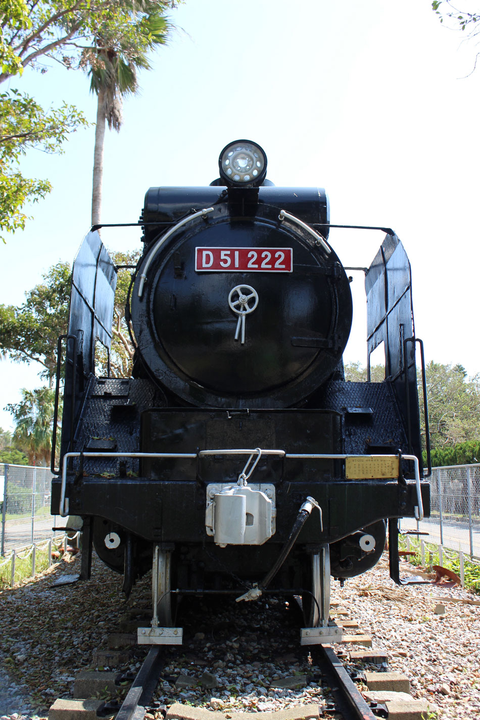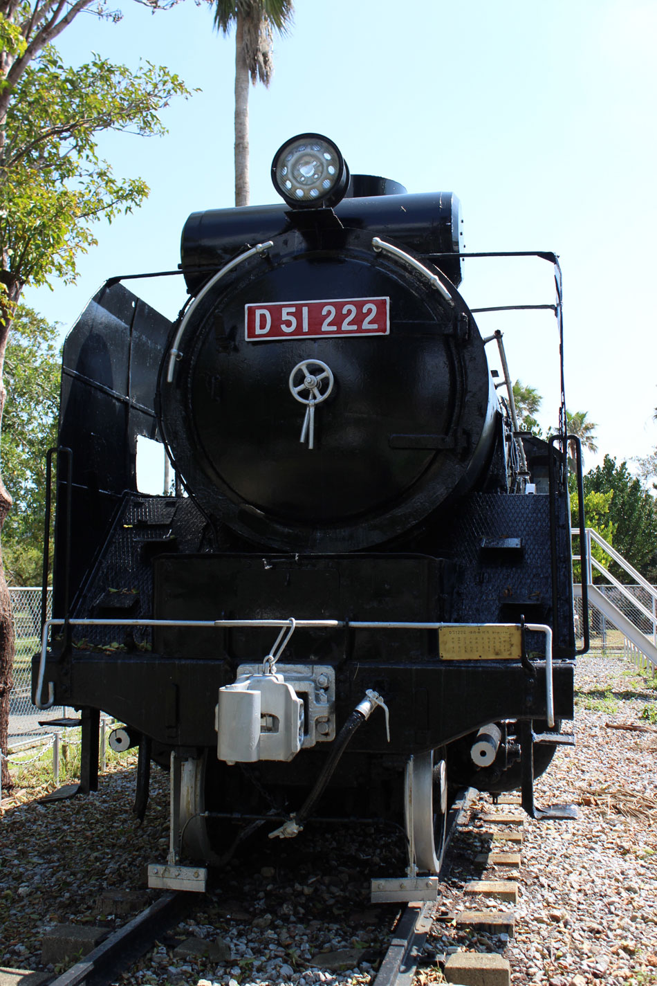 この日は、那覇市与儀公園のD51 222号機を訪問。 ・車歴 製造年月日 1938年12月18日 製造所 小倉工場 1938年12月18日 大里機関区 1941年5月4日 直方機関区 1943年11月27日 熊本機関区 1971年5月14日 南延岡機関区 1973年1月10日 南延岡機関区にて廃車 沖縄の本土復帰(昭和47年5月15日)を記念して、北九州市の日本国有鉄道門司鉄道管理局の有志の方々によって、沖縄の子供を招く運動が展開されました。そのとき那覇市内の小学校5・6年生72名が招待され、国鉄職員の里親のもとで、8日間の楽しい生活を送りました。 はじめてみる九州の自然や暖かく迎えていただいた里親の心づかいに子供たちは感激するとともに、身近に見た蒸気機関車の巨大さ、たくましさにすっかり心をうばわれ、口々に機関車がほしいと言いだしました。それを聞いた里親である国鉄職員の方々は、鉄道のない沖縄の子供たちのために、何とか九州を走っている実物の蒸気機関車を贈ろうということになりました。 ところが、鹿児島から海上600キロメートル隔てた那覇へ重さ90トンのD51を運ぶことは高度の輸送技術と莫大な費用がかかりましたが、重量運搬について経験深い業者の協力と、国鉄職員をはじめ全国の方々からの1千4百万余円の募金によって、無事その偉業が実現しました。 ここに展示されているD51 222は、このような経過のもとに贈られたものですが、関係各位の努力はもとより、沖縄を思う親愛の情の象徴としていつまでも大切に保存したいものです。(案内板より) 公道に面した公園入口付近に保存。今帰仁村のC57 87号機が2005年に解体されてからは、沖縄県内唯一の保存機となっています。 塗装に痛みが出ていた時期もあったようですが、現在は数年に一度、沖縄県自動車車体整備協同組合の方々の手によって補修作業が行われており、状態は良好です。ナンバープレートの色は銀文字ですが、見栄えは悪くありません。ガラスが割られてしまった前照灯には自動車のホイールが入れられている様です。 動輪は塗装が厚く刻印は確認できませんでした。側面プレート・製造銘板は残っています。現役時代とは異なりますが、このカマの銀差しはなかなか良い感じですね。 後ろから。キャブ内へは階段が設置されていますが、フェンスがあるので通常は入れません。 保存時の記念式典では火が入れられ、汽笛の吹鳴などもあったそうです。大きな公園での保存ですので、保存の経緯も含め、これからも語り継がれてほしいと思います。 沖縄では、戦前は軽便鉄道が走っていましたが、戦後は長らく鉄道路線が存在しない状態が続きました。2005年、那覇空港〜首里間でゆいレールが開業し、沖縄に鉄道路線が復活した形になります。延伸計画もあり、利用も順調のようです。 PR コメントを投稿する