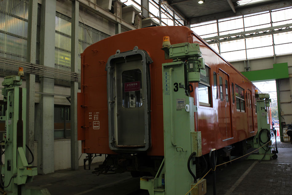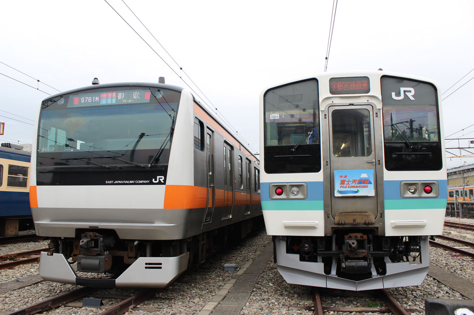この日は、恒例となった「豊田車両センターまつり」が開催されるということで、参加してきました。 2012年、2013年(行ったのになぜか記事にしていない)に続いて3回目の開催となります。3年目にして、ついにクハ201-1が綺麗に再塗装・整備の上、正式に展示されました。検修庫から頭を出した状態で展示され、1分間ごとの交代制で近寄ることが可能でした。 思えば運用離脱が2008年1月ですから、約7年間、露天で保存されていたことになります。鉄道博物館への収蔵を前提とした保存だったものの、かなり色褪せていましたので、こうして豊田の地で再び綺麗な201系を見る事ができるとは思っていませんでした。 前面部は交代制でしたが、後ろは自由に撮影が可能でした。 なお、イベント後も本線よりの定位置には移動せず庫内で保存されており、今年の公開では運番表示器がアナログ式に復元されていたようです。鉄道博物館も拡張の計画がありますので、いつかのタイミングでは大宮に移ることになりそうです。 奥の庫内には、「急行」幕の115系と「ホリデー快速河口湖」表示のT41編成。 ↑115系M7編成・E233系T41編成 メインの車両展示コーナーは、中央線に縁のある車両が一同に集まりました。 青669編成「9761M ホリデー快速おくたま 御嶽」、N324編成「宇都宮線直通」ヘッドマークは富士河口湖号。211系のLED、まだ高崎車セ時代の内容が残っているんですね。 ↑E233系青669編成・211系N324編成 青梅線120周年のHMを掲出した青461編成と、C1編成も留置。展示用に準備されたわけではなく、たまたま入庫する運用に入っていた模様。 ↑E233系青461編成・E233系青665編成・115系C1編成 ↑E233系青461編成(青梅線120周年HM) T38編成は「4649Y 各駅停車 豊田」 ↑E233系T38編成 青463編成は「1013 東飯能/奥多摩」 ↑E233系青463編成 そして驚かされたのがM2編成、何と既に廃車となったM40編成の編成札と「むさしの号」のヘッドマーク付きで展示されていました。 ↑115系M2編成 一番の人だかりとなっていたのは、「あさま」幕のN101編成とEF64 39の並びでした。今年はどちらも既に鬼籍に入られましたが。この1年間だけで、中央線を走る車両もまたガラッと変わりましたね。 ↑189系N101編成・EF64 39 T7編成は「2014T 特別快速 豊田」。 ↑E233系T7編成 今年も例年通り開催され、今年のメインはN102編成とM52編成が並んで展示されたようです。今年は都合が付かず参加できませんでした。 この日はこれにて帰宅。 PR コメントを投稿する