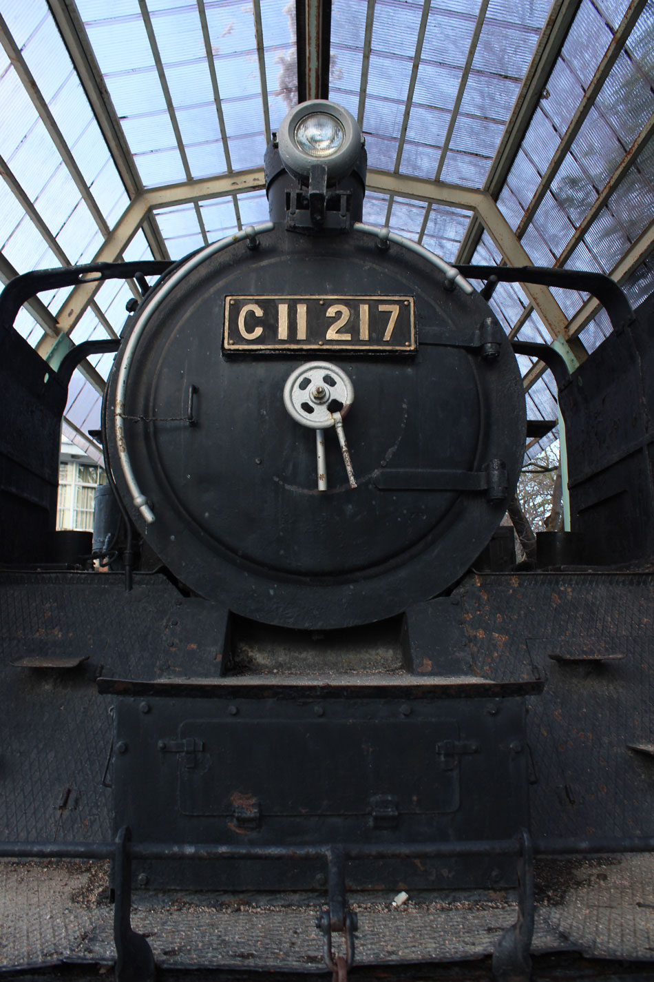 万葉線を広小路電停で下車し、高岡古城公園のC11 217号機を訪問。 ・車歴 製造年月日 1941年7月28日 製造所 日本車輌 1941年7月28日 多治見機関区 1942年1月 名古屋機関区 1961年12月 七尾機関区 1969年9月4日 七尾機関区にて廃車 広い古城公園内、市民体育館横の駐車場に保存。積雪のある地域なので屋根があります。訪問時には機関車の前が雪捨て場になっていました。 なんとかカマに近づいて撮影。かなり錆が出ていますが、状態はそれほど悪くなさそうです。晩年に七尾機関区から富山第一機関区に貸し出されていたことから高岡に保存されたようです。 動輪は塗装されています。雪かきの際に雪が飛んだのでしょうか、プレート周りは泥汚れがついています。 キャブ内には立ち入る事ができません。ガラス越しに撮影、計器類は綺麗に残っています。 テンダーのライトがやたらと高い位置に付いていて不格好です。 屋根があるので荒廃することは無いと思いますが、あまり目立たない場所にあるので悪戯などが心配です。 この後は万葉線に乗って高岡に戻りました。続きます。 PR コメントを投稿する