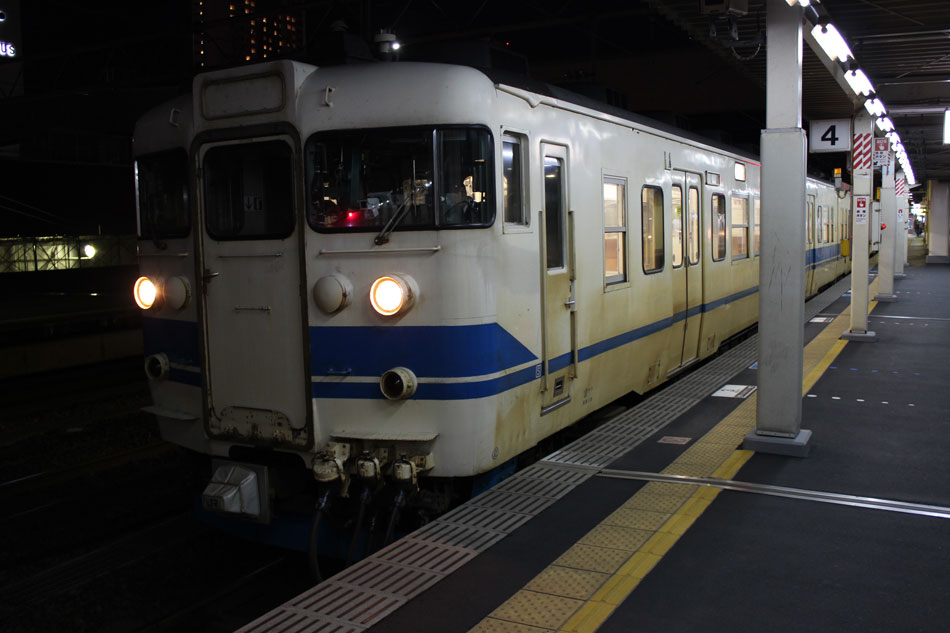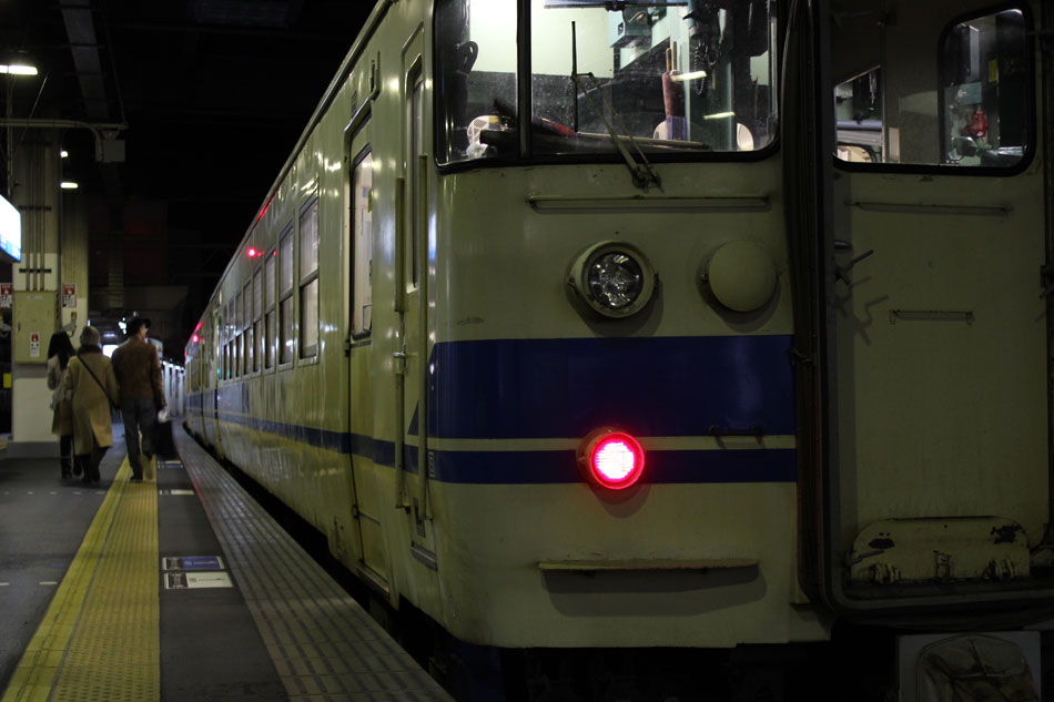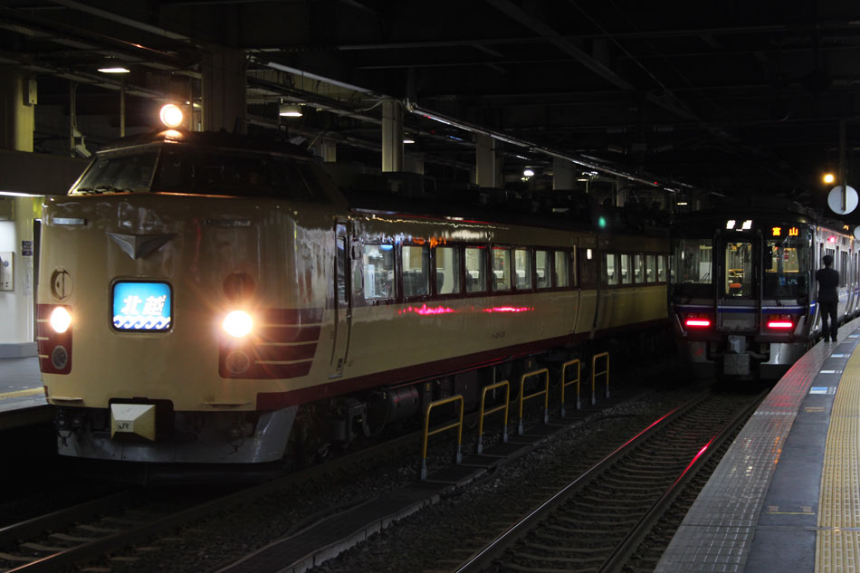 高岡古城公園のC11 217を訪問し、高岡駅に戻ってきました。 高岡駅から少し歩いたところでトワイライトエクスプレスを撮影。T18編成の北越も来ましたが、影落ち+タイフォンパッカーンでとてもお見せできません… ↑****レ DE10 3513[東新]+コキ1*B 貨物列車@高岡付近 ↑8001レ EF81 43[敦]+24系改"トワイライトEXP"客車10B 寝台特急"トワイライトエクスプレス"@同上 高岡駅に戻るとすっかり日も暮れ、高岡鉄道部の背後は夕日に照らされた北アルプスが浮かび上がっていました。 高岡からは特急利用で金沢へ。昼間回れなかったひがし茶屋街に行きましたが、ほとんどの店舗が 年末休みに入っていたため人も少なく明かりも少なく。 北陸9号にローテーション通りT18編成が入りました。やっと1500番台先頭の「北越」が撮れました。 ↑1059M 485系T18編成6B 特急"北越9号"@金沢 ↑同上 夜の金沢駅、今は観光客が増えて落ち着いて撮れないんでしょうかねえ。 宿泊地となる富山に移動しますが、七尾線の415系も撮っておきます。415系を名乗ってはおりますが、800番台は113系から改造された車両、中には種車の車歴が50年を超える車両もあります。 ↑***M 415系C09編成3B 普通"七尾行"@金沢 富山への普通電車は編成中に1両だけ455系が含まれる413系B11編成でした。475系が引退した今では、413系に含まれている455系は唯一の現役国鉄急行形。 ↑485M 413系B11編成3B 普通"泊行"@金沢 これにて1日目が終了しました。2日目は朝から東富山で475系他の撮影からスタート。続きます。 PR コメントを投稿する