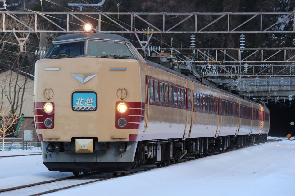 富山城址の9628号機を訪問後、富山駅から北陸本線を直江津方面へ向かい、市振駅で下車。 当初は駅だけで撮影する予定でしたが、あまりにも天気が良いので、俯瞰できる場所へ。この場所、下の県道から階段でのアクセスとなるのですが、階段が除雪されておらず、手摺りに命を預けて腕の力だけで上るという恐怖を味わいました… そんなわけで、約13時間遅れのトワイライトまで待機します。 ↑8062M 681・3系9B 特急"はくたか82号"@市振〜越中宮崎間 ↑1053M 485系R2*編成6B 特急"北越3号"@越中宮崎〜市振間 そして本番、まさか快晴の日本海をバックに、順光下でトワを撮れるとは思いませんでした! ↑8002レ EF81 **[敦]+24系改"トワイライトEXP"客車10B 寝台特急"トワイライトエクスプレス"@市振〜越中宮崎間 この後T18編成の"北越"が来ますが、こちらはヘッドマークをしっかり写したかったので市振駅に戻りました。 山陰の中になってしまいましたが、前日にはパッカーンだったタイフォンも閉まっており、やっとリベンジに成功。 ↑1054M 485系T18編成6B 特急"北越4号"@市振 というわけで、市振駅とその周辺での撮影はこれにて終了し、続いて直江津から信越本線に乗車、妙高高原を目指します。続く。 PR コメントを投稿する