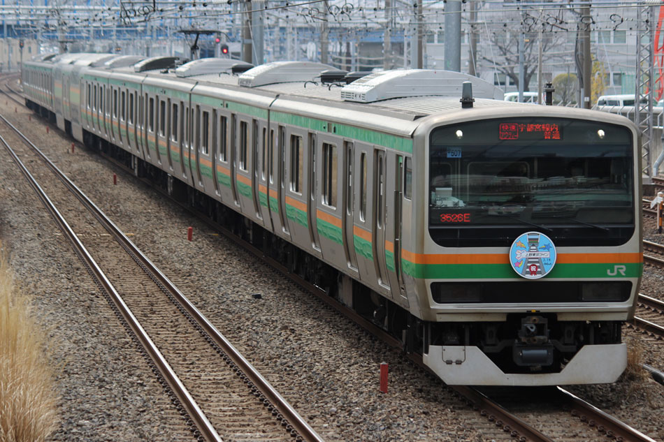 かがやき501号を大宮で下車、大宮から上野東京ラインに初乗車。そのまま横浜へやってきました。上野東京ラインの開業を記念して、乗務員の考案による計4種類のヘッドマークが14日・15日に限り掲出されました。下りはことごとく東神奈川で被られたので、西横浜で上り待ち。 ↑3526E E231系U507編成10B 快速"アクティー(宇都宮線内普通)宇都宮行"@戸塚〜横浜間 ↑1592E E231系U33編成+U502編成15B 普通"古河行"@同上 ・15日 U502編成は新子安で被られ、U507編成の下り方のみ何とか撮れました。一度被られてしまうとなかなか帰ってこないので、さすがに待っていられません… ↑1559E E231系U507編成10B 普通"熱海行"@大井町 おまけ 東京駅の赤レンガラッピング山手線、乗ることはあってもなかなか撮る機会に恵まれず、終了直前のこの時になってやっと撮れました。画像が1枚だけなので一緒に掲載します。 ↑1175G E231系トウ514編成11B(東京駅100周年ラッピング) 渋谷・新宿方面行@品川 PR コメントを投稿する