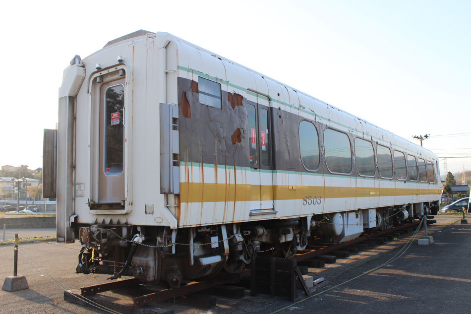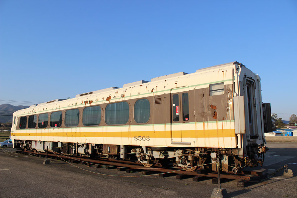 昨年4月25日の話。前回記事の続きです。 広田のストレートであいづ6号を撮影した後、会津若松駅への道すがら、「やすらぎの郷 会津村」駐車場に保存されていた会津鉄道キハ8503を訪問。 ・車歴 製造年 1991年 製造所 日本車輌製造 1991年3月16日~2001年9月30日 名鉄新川検車区 2002年3月23日~2010年5月30日 会津鉄道「AIZUマウントエクスプレス」で運用 2011年頃 廃車 名鉄のJR直通特急「北アルプス」用として5両が製造されたキハ8500系のうちの1両。会津鉄道での運用を終えた後、愛知県に里帰りして保存される予定でしたが、東日本大震災が発生し、保存場所が会津村に変更されました。 駐車場に露天で保存されており、保存状態は悪く、セコムのステッカーが至るところに貼られて車内への立ち入りは出来ませんでした。 この他にもう1両、キハ8502が保存されていましたが、シートを被っている状態であったため撮影していません。 この後、2015年8月頃に2両ともマレーシアに譲渡され、今年3月頃から運用されている模様です。まさか放置同然だったこの車両が、海外で第三の車生を送ることになるとは思いませんでした。 PR コメントを投稿する