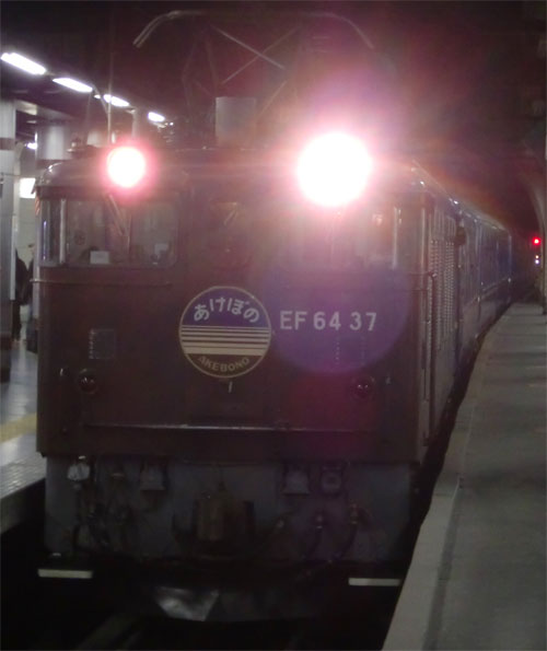 寝台特急北陸号を撮影した後は、寝台特急あけぼの号の撮影に移ります。 寝台特急あけぼの号は急行能登号・寝台特急北陸号の臨時化・廃止のなかで生き残りましたが、EF64 0番台が撤退するそうです。わずか1年の命でしたね。撤退後は高崎に再転属するそうです。また甲府の0番台のバリエーションが増えるのでしょうか。 この日は、EF64 37号機でやってきました。撤退する0番台、茶釜でした。EF64 38号機のあけぼの号も撮影してありますので、コンプリート済みです。そういえば、昨年の夏に大幅遅れが出ていたときも茶釜でした。 鶯谷で、推進回送を撮影。茶釜が朝日を浴びて輝いてます。 来年までには危ないと思われるあけぼの号、こちらは上野駅夜9時頃、朝7時頃と比較的狙いやすい時間での運転となっています。早めに撮影しておいたほうがいいかも知れません。 PR コメントを投稿する