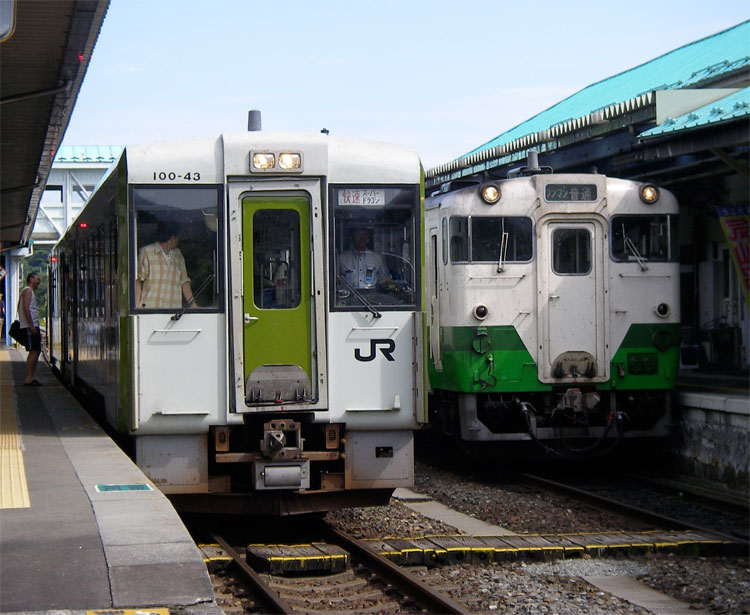 釜石からは、三陸鉄道南リアス線に乗車します。36−100形でした。 三陸鉄道ホームからキハ110形並び。あれ?先ほどは普通幕だったのに快速幕になってますね。別の車両だったようです。 車窓。リアス式海岸が広がります。 終点・盛駅に到着。JR側の駅舎。 三陸鉄道側の駅舎。 JR側の駅に入場し、乗ってきた列車の入れ替えを・・・。 ここからは「快速スーパードラゴン」に乗車します。こちらもキハ110。 特に何も無かったので・・・跨線橋へ。36−600形「さんりくしおさい」はお休み中でした。 岩手開発鉄道のホキ群・・・。 再び駅に入場します。36−1100形が入れ替え中。こっちに乗りたかったなぁ・・・。こっちには車内に自動販売機が設置されているようです。 ここから「スーパードラゴン」で大船渡線に入ります。車内でカメラが故障したりしましたが・・・ひとまずサブ機を使う事に。そんなこんなで気仙沼に到着。ここで乗り換えます。キハ48とキハ110の並び。 キハ48に乗車します。一駅だけですが・・・。あの暑いなか非冷房でした。 南気仙沼駅で下車。駅舎は・・・至って普通。 「気仙沼 海鮮市場 海の市」を訪問。この旅の裏メイン?ふかひれ丼を食します。 館内にある「ふかひれ・や」のふかひれ丼をいただきました。ふかひれ、丸々入ってます。美味でした。 駅に戻ります。快速「南三陸4号」で仙台へ・・・。キハ110は「奥の細道」カラーでした。 東北本線との合流点・小牛田で少々停車します。郡山で出場したと思われる?701系が入線してきました。 留置中の車両達を跨線橋の上から観察。キハ48・40「ふるさと」や、まもなく引退を迎える「こがね」などがいましたが、こがねの隣がまさかのキハ110−1でした・・・。さりげなく存在をアピールしてますねぇ。 仙台に到着。早速、カメラを手配。仙台駅を撮影テストに使ってみました。 喜助の牛タン定食がこの日の夕ご飯でした。 ・・・すごく長くなってしまいましたね。すみません。これで3日目が終了となります。 PR コメントを投稿する