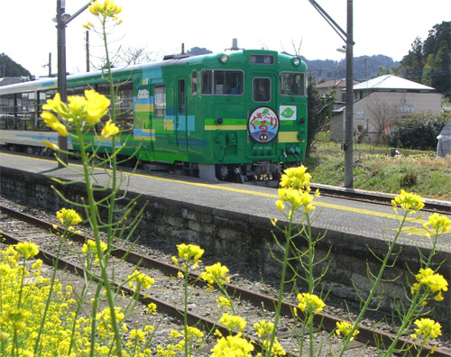 快速すいごう号に乗って千葉へ向かった後は、内房線で木更津へ、10:08発の久留里線の風っこくるり号に乗車しました。 「風っこ」は、キハ48形を改造した車両で、各地で臨時列車として運転されています。トロッコ車両としても活躍している車両ですが、今回の乗車では窓が取り付けられていました。冬場や悪天候時の対応として窓を装備しています。 車内。 さて、1時間ほど乗車し、終点の上総亀山には11:12に到着しました。 菜の花を入れて撮影できる場所があったので、撮影。 乗車した感想を、少し・・・。 イスが木製なので硬かったです。1時間も座っていると、さすがに疲れてしまいました。 良かったと思えたのは、暖かな空間。各所に木が使われているので、暖かみを感じることが出来ました。 上総亀山では長く滞在せず、すぐに木更津に戻り、内房線で五井に向かい、小湊鉄道を見学しました。これは次回。 ※2011年1月15日 記事修正を行いました。 PR コメントを投稿する