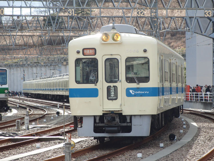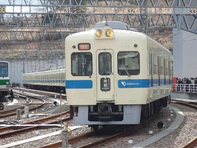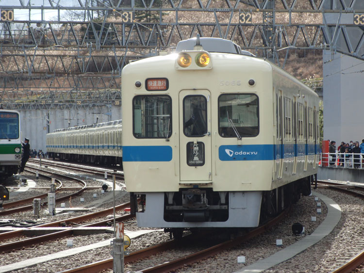 「(黒幕) 唐木田」黒幕なので運転実績なし。 「快速急行 海老名」急行はありますが、快速急行は運転実績なし。 「快速急行 本厚木」運転実績なし。 「快速急行 秦野」2007年・2008年に運転された丹沢もみじ号で使用されました。定期での運転実績はなし。2007年に運転された模様はこちら 「快速急行 新松田」運転実績なし。急行は存在します。 「快速急行 小田原」定期列車でも存在。 「快速急行 箱根湯本」運転実績なし。今後も運転されることは無いでしょう。小田原〜箱根湯本間の4両制限があるので。 「快速急行 新百合ヶ丘=多摩センター」運転実績なし。あるわけないでしょう。 「快速急行 多摩センター」運転実績なし。多摩線の優等種別は、区間準急と多摩急行のみ。 「快速急行 藤沢」毎時2本ほど運転されております。 「快速急行 片瀬江ノ島」以前は定期列車としてありましたが、現在は江ノ島での花火大会の時のみ運転されています。2009年の模様はこちら たぶん間違えて5268Fが表示するはずの「快速急行 片瀬江ノ島」まで回してしまったようで、この後予定通り「各停 多摩センター」に直されました。 PR コメントを投稿する
