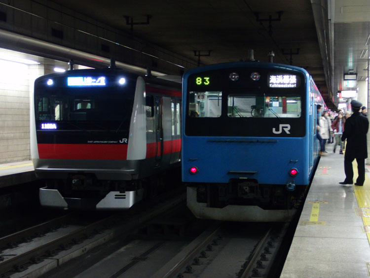 上野駅で「懐かしのブルトレ〜号」を撮影した後は、東京駅へ。まもなくHM掲出が終了する京葉線を撮影しました。 E233系ケヨ501編成(HM付き)。 205系ケヨ10編成(HM付き)。205メルヘンもあと2編成。 209系ケヨ34編成(HM付き)。京葉線209系もあと1編成。 E233系ケヨ502編成(HM付き)。あらら、4連続でHMですか。4編成しか無いのに。 85運行はケヨK4+54でした。 95運行代走はケヨ9編成でした。E331系もどうしちゃったんでしょう。最近走ってませんが。 12/4ダイヤ改正でデータイム運転となった快速上総一ノ宮行き。E233系ケヨ507編成でした。 隣にケヨK3+53編成が入線、新旧並びに。 ケヨK3+53を単体で。 ここまでで撮影終了し、続いてドクターイエローを狙います。 PR コメントを投稿する