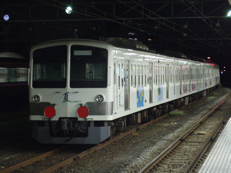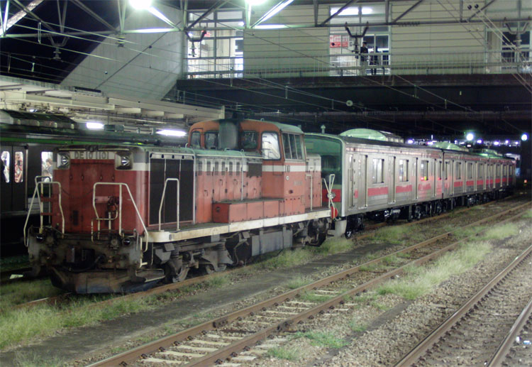 この日は元京葉線205系を改造した富士急6000系の甲種輸送があるということで、終電間際の八王子に行ってきました。 甲種の編成は下2番に留置中。東京方には、梶ヶ谷から大月構内にある非電化の富士急行連絡線入れ換え用としてDE10 1101を連結。 種車はケヨ22編成、1月に編成単位で長野総合車両センターに配給された後、改造が進められました。残りの改造は富士急の方で行われるようで、最小限の改造にとどめられています。こちらは元クハ204-11。京葉線当時の赤帯のまま、JRマークはテープで隠されています。各車両にはドアボタンが設置されていました。 元モハ204-33。優先席シールもそのままの状態。 元モハ205-33、先頭車化改造が行われ運転台が取り付けられました。運転台部分には帯がありませんね。 改造後の姿が楽しみです。まさか205系が富士急行に行くとは…。 横浜線ホームから。 EF64 1024が連結されている姿を撮りたかったのですが、横浜線の終電までに連結されなかったので残念ながら撤収。 −おまけ− この日は西武多摩川線新101系「夏」編成の入場もありました。 横浜線、上りの終電となる2438K町田行きと並び。 PR コメントを投稿する