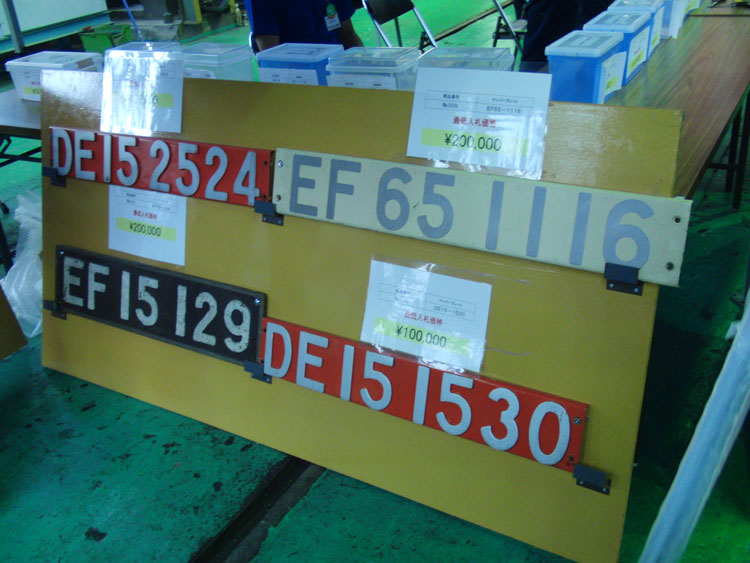 大宮工場2011。構内でいろいろなモノを見つけました。 JR貨物のプレート販売コーナー。EF65−1044・EF64−65・EF65−1035。 EF65−1056・EF65−1049。 DE15−2524・EF65−1116・EF15−129・DE15−1530。未だにEF15のも出てくるんですねぇ。 ED75−1931・DE10−1182。いつのまにか1182号機も潰されていたとは・・・仙貨で活躍していたカマです。 新幹線の高架下から、クハ209−7と205系ケヨ24の3両を確認。ここに置いてあるということは保存でしょうか?特に205系の方はトップナンバーを含んでいますし。 クモハ300−4。今年は、「原木中山」表示。 203系の方向幕が販売されていました。35000円。 Max色のワムも健在。 入口付近の機関車前頭部。EF60−47。 EF63−13。 外に出て、大正橋へ。24系が入場中でした。どうせならこれも展示してほしかったなぁ。 入換用のDE10−1099が「あけぼの」HMで展示。 ・・・ということで、今年の大宮公開の見学は終了となりました。来年は通常通り5月に開催されるかな?また高架下の機関車を整備して展示してくれると良いですね。 大宮総合車セ前に展示されているD51 187号機を観察してきたので、次回はこちらをご紹介します。 PR コメントを投稿する