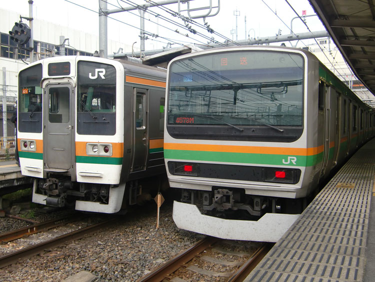 高崎車両センターには、付属編成として使われる、A編成・B編成(5両)と、基本編成として使われるC編成(10両)が所属しています。2006年7月までは付属編成と基本編成が分けられておらず、全てグリーン車なし5両編成でした。基本編成は高崎線(一部両毛線前橋まで)・宇都宮線で、付属編成は高崎線・宇都宮線・両毛線で運用されていましたが、E233系により置き換えが進み、現在の運用区間は以下のとおりとなっています。