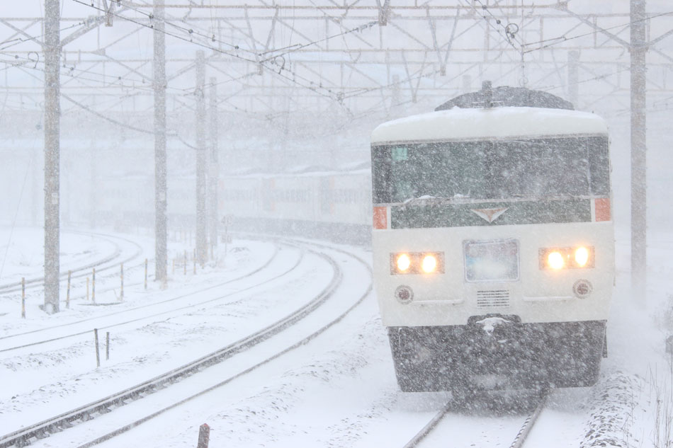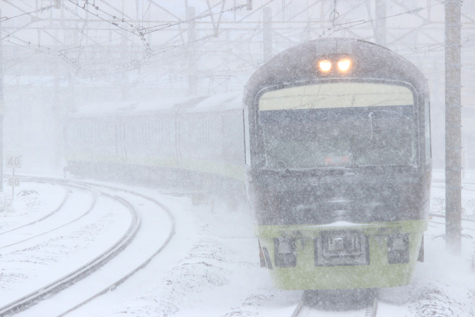 大雪の中運転された"カナロコ列車"を撮影する