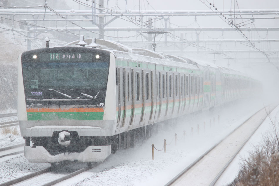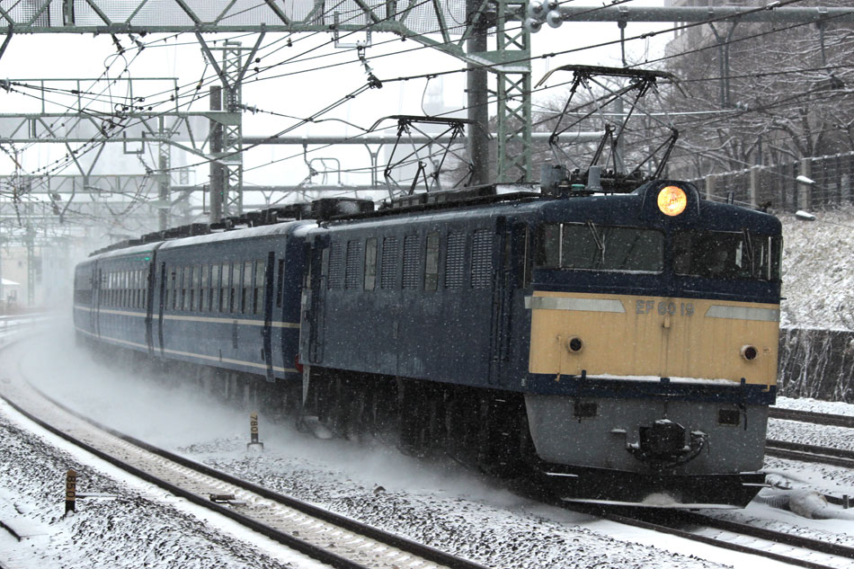 この日は、朝から関東地方は大雪となりましたが、神奈川新聞社主催の団体臨時列車 第3回"カナロコ列車"が予定通り運転されるということで撮影してきました。 EF60 19とEF65 501のプッシュプル牽引。新子安では雪を巻き上げながら通過していきました。 ↑9812レ EF60 19[高]+12系客車5B+EF65 501[高] 団臨"カナロコ列車"@新子安 この列車は復路も横浜まで運行予定でしたが、大雪の影響で大宮に120分延着、そのまま打ち切りとなってしまいました…。 せっかく雪が降っているので電車が止まらないうちに雪景色。 ↑773M E233系E03+E5*編成15B 普通"熱海行"@新子安 リゾートやまどりが遅れて来ているので大船へ移動。 ↑3027M 185系A4編成10B 特急"踊り子107号"@大船 ↑9***M 485系改"リゾートやまどり"6B 快速"伊豆いで湯やまどり"@大船 この後は横浜線を撮影して帰宅。 | カレンダー