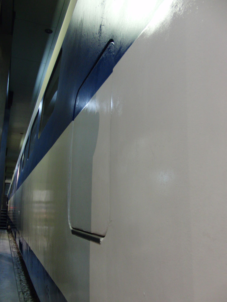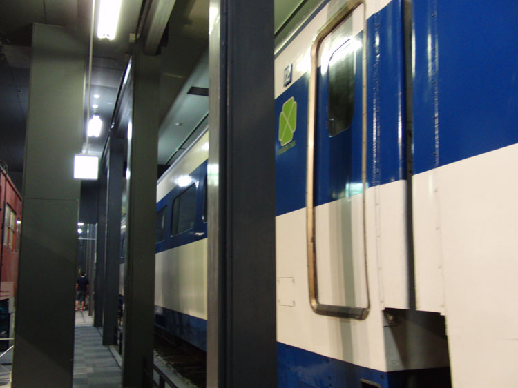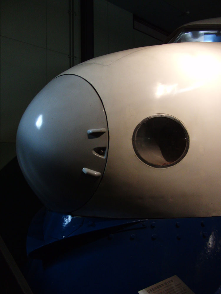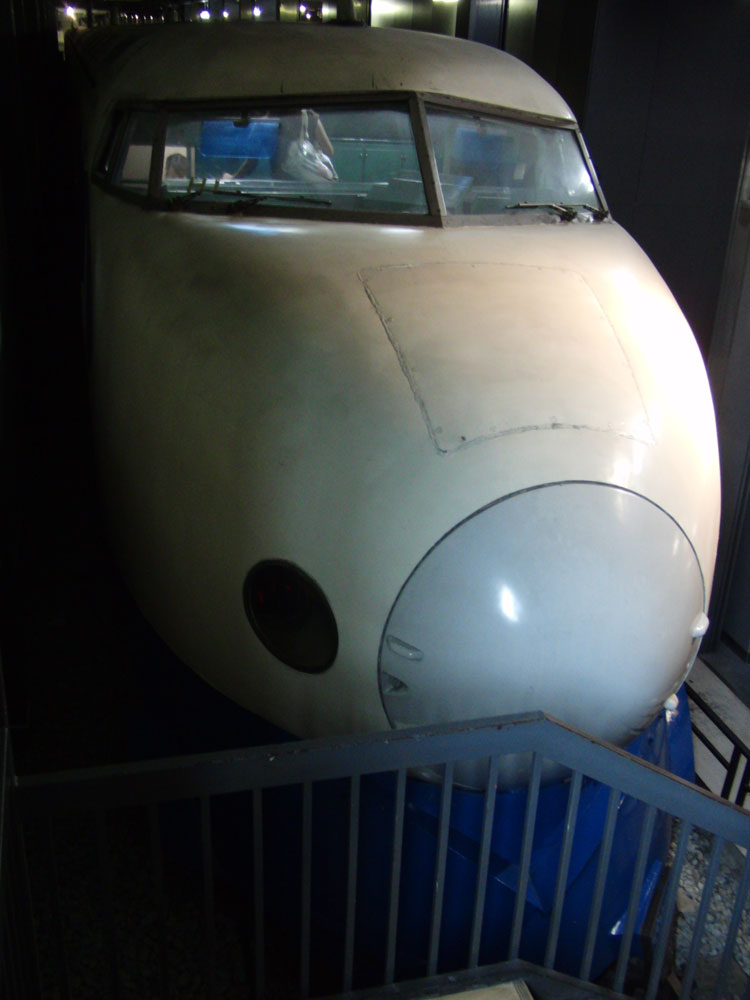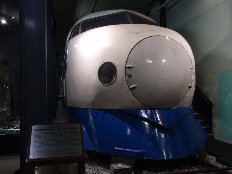 交通科学博物館の屋外展示場を見学した後は、屋内展示場に入っていきます。 狭い館内に、0系が4両展示。 1964(昭和39)年10月1日、世界中の注目をあび、東海道新幹線は開通された。軌間(2本のレールの幅)を在来線(1067mm)より広く1435mmとしたり、全線を盛土、高架にして踏切をなくしたり、従来の鉄道を一新するものであった。新幹線はその後さらに全国に路線を広げ、「安全、高速、大量輸送」運転につとめ、日本の基幹交通として大きな影響と役割を果たしている。 0系新幹線電車の最高速度210Km/hは、当時世界一の営業速度であり、「SHINKANSEN」という言葉がそのまま各国で用いられるほど、世界中から注目され、高速鉄道のさきかげとなった。 ここに保存展示する0系新幹線電車(4両)は、開通当初のそれぞれの1号車で、1978(昭和53)年3月の引退までに約600万キロメートルを走行している。 (案内板より) 21−1号車。 グリーン車、16−1号車。 ビュッフェ車、35−1号車。 先頭車、22−1号車。全く引きがありません。 ここまでスペースギリギリに展示されている車両も無いでしょう・・・。大変見づらく残念です。 その他の保存車両は、続きに。
