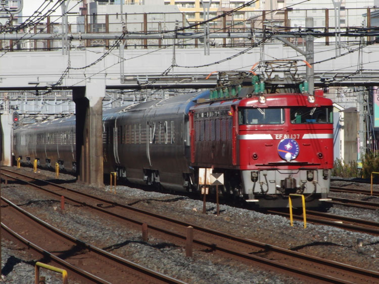 この日は、EF81−137牽引のカシオペアを撮影してきました。・・・そう、こちらの記事の別のお話とはこのこと。青森にいるEF510−511が重傷で直らなかったようで、またEF81−137が牽いて上京してきました。 前回失敗した鶯谷にて。今回は成功。しかもHM付きでやってきました。 上野にて。 鶯谷で推回を撮影して、終了。 27日に上京してくるカシオペアは、故障していたEF510−511号機が牽引したそうで、どうやら重度の故障では無かったようです。デビュー時から故障が絶えないJR東日本のEF510、早く落ち着くといいですね。 おまけ 2レはEF510−502牽引でした。上野にて。 | カレンダー