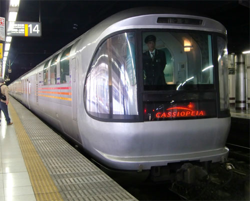 「489系特急とき」の撮影後、ホテルに戻っていたのですが、疲れも出ていたのか、爆睡してしまいました。やっと起床したのが9:30。そこで、寝台特急カシオペア号・寝台特急北斗星号を撮影することにしました。定時で走っていたら間に合わないのですが、遅れているということで、間に合いました。 寝台特急カシオペア号は、上野で撮影。EF81−79号機が牽引してきました。到着後、すぐにライトは消えてしまうので、停車直後に撮りました。 JR東日本が開発した寝台客車E26系。いまのところ、JRグループ全体でもJR唯一の新造寝台客車となっています。 E26系を撮影していると、北斗星が入線。カシオペアの推進回送発車を待って、まずは24系を撮影。 続いて。EF81側。この日は、EF81−81号機が牽引してきました。ファンサービスなのか、推進回送準備直前までライトが点灯していました。この後、EF81−81地獄にはまるのですが、それはまた今後ご紹介することになります。 この日の撮影はまだ続きます。 PR