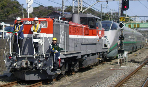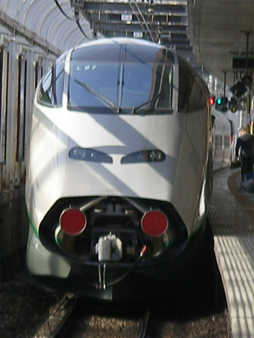 こちらがE6系の外見です。う〜ん、やっぱり鼻が長いんですね。E5系と併結して運転するとのこと。「こまち」用のE3系を引き継いで赤っぽくなるようです。 ・新幹線区間の最高速度は320km ・在来線運転時の急カーブへの対応 ・7両編成で5M2T ・編成長は148.65m ・グリーン車の定員は23名、普通車の定員は315名 ・車内には電源コンセントをグリーン車全席と窓側および車端部の座席に設置 ・在来線区間の最高速度は130km などがこの車両の特徴です。N700系のように電源コンセントが設置されるようですね。やっぱり在来線区間では130kmになってしまうようです。ここは仕方無いかな・・・。 まぁ、デビューしたら乗りに行きたいと思います。