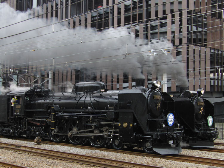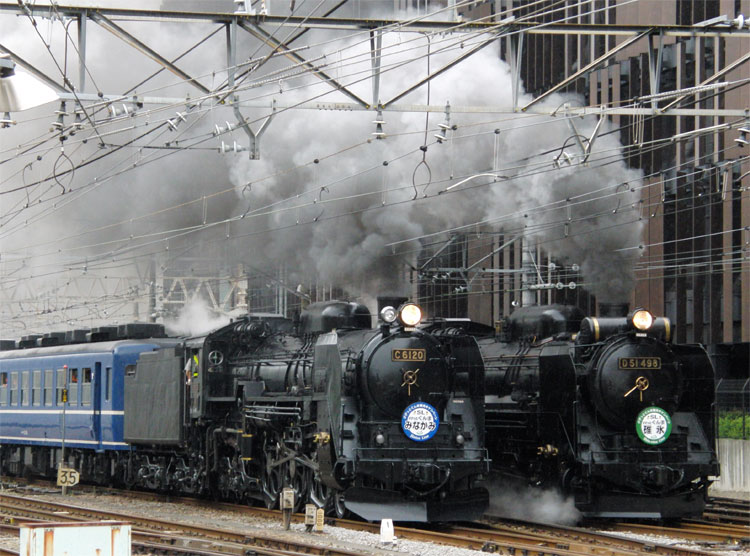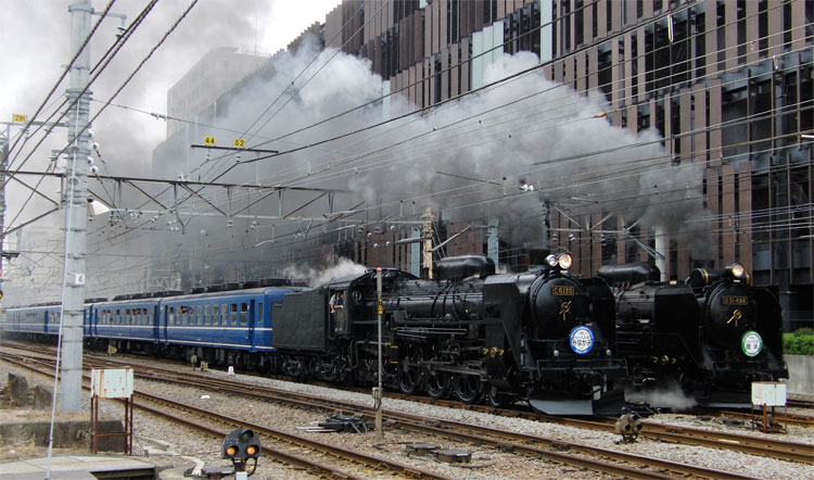 高崎駅でC61とD51が同時発車