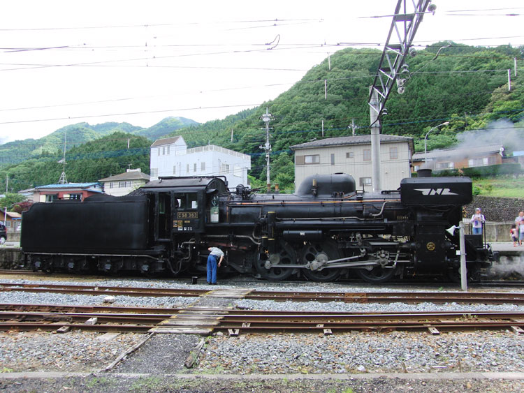 この日は、後藤デフに換装されたC58 363号機を撮影するため、秩父鉄道に行ってきました。 もう昨年の話になりますが…5月15日の「秩父鉄道わくわくフェスタ」から6月30日の運転まで、C58 363号機のデフレクターがC58 33号機がかつて装備していた"G-2型後藤工場デフ"を装備して、SLパレオエクスプレスを牽引しました。 G-2型デフは何より側面に大きな"JNR"ロゴが入っているのが特徴的ということで、側面がちに狙える荒川橋梁にて一発目。 ↑5001レ C58 363[高]+12系4B "SLパレオエクスプレス"@上長瀞〜親鼻間 パレオは停車時間がありますので追っかけ、白久のお立ち台で二発目。 ↑5001レ C58 363[高]+12系4B "SLパレオエクスプレス"@白久〜三峰口間 折り返し作業の見学に三峰口へ。C58 363は12系から切り離され、点検作業中。故障に脱線と災難続きだった同機ですが、まだまだ頑張ってもらいたいものですね。 各種点検作業が終わると、引き上げ線で折り返して転車台で方向転換。 バックで引き上げ線に戻り、復路の運転に備えます。 復路もそこまで時間が開かず、せっかくなので撮影しようかとも思っていましたが…秩父市内で昼食を摂っていたら汽笛も高らかに通過してしまい、この日はこれにて帰宅となりました。 ちょうどパレオに先行する普通列車に1001Fが充当されていましたので、次回はこちらを記事にします。続く。