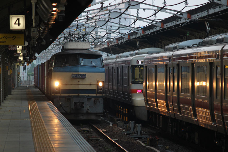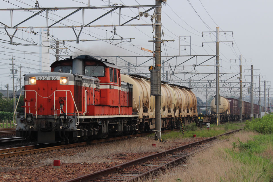 この日は、3日夜に東京を発車する快速「ムーンライトながら」に乗車して、関西方面に行ってきました。 いつものように小田急線で小田原に向かい、小田原からながらに乗車。この日は走行中にドアが開いてドア点検と、異音感知の影響で遅れていました。貨物の通過を待ったため浜松停はカットされず。 ↑9391M 185系B7編成+B4編成10B 快速"ムーンライトながら"@浜松 運転停車を削って名古屋には定時で到着、今回は大垣まで行かずここで下車。各駅停車で清洲駅に向かいます。EF66 33牽引の貨物列車が来ました。 ↑****レ EF66 33[吹]+コキ1*B@名古屋 10分程度でDD51が続行する撮影者に優しいダイヤでした。現在は95レがEF64牽引に変更、5271レも夏期運休となってしまったようですね。撮りたかった原色も来ました。 ↑95レ DD51 1805[愛]+コキ1*B@稲沢〜清洲間 ↑5271レ DD51 893[愛]+タキ1*B@同上 愛知向けに改造されたDF200-223も試運転が始まり、既に最終全検も終了しており、DD51の活躍はあとわずかと思われますので、石油貨物が走っている頃にもう一度腰を据えて撮影に行こうと考えています。 この後は、東海道線を西へ下り、石山駅から浜大津に向かいました。続きます。
