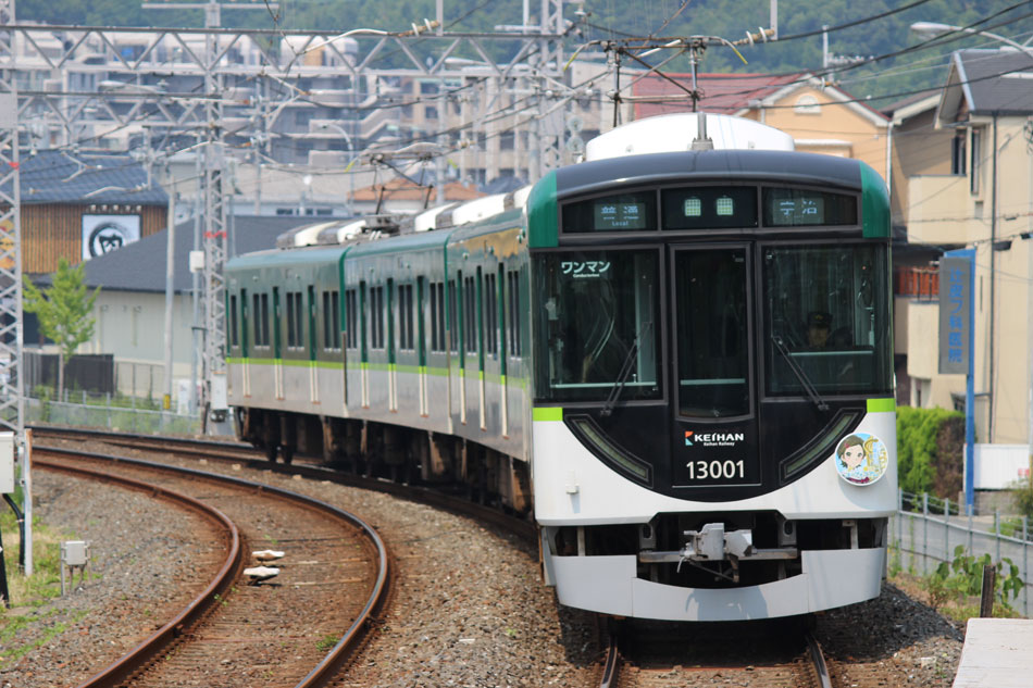清洲駅付近でDD51牽引の貨物列車を撮影した後は、東海道線に乗車し、大垣・米原で乗り換えを経て石山駅で下車。京阪石山駅から京阪大津線に乗車し、浜大津駅へやってきました。 京阪大津線では、ラッピング列車が数多く運転されていますが、特に地元の京都アニメーション作品に関しては、盛んにコラボが行われています。現在は京阪宇治線沿線が舞台となっている「響け!ユーフォニアム」のラッピング列車が走行しており、京阪電車全体でコラボの取り組みが行われています。 ↑0868レ 京阪619-620編成2B("響け!ユーフォニアム"ラッピング) 石山寺行@三井寺~浜大津間 後ろはピンク色を基調としたデザイン。 ↑同上(後追い) 続いて京都駅経由で京阪宇治線へ。こちらはラッピング列車の運行はありませんが、編成によって異なるヘッドマークの掲出が行われていました。 ↑****レ 京阪13001F*4B 普通"宇治行"@六地蔵 終点の京阪宇治駅でヘッドマークを撮影。残念ながら、この日は他のマークの編成は稼働していませんでした。 響け!ユーフォニアムは今年10月から第二期が放送予定で、大津線のラッピング列車は海側・山側で異なるデザインに変更されるなど訪問時から変化がありましたので、聖地巡礼も合わせてまた撮影に出向きたいと思っています。 この後は、京阪線で大阪へ。381系の「くろしお」と「こうのとり」を撮影します。続く。